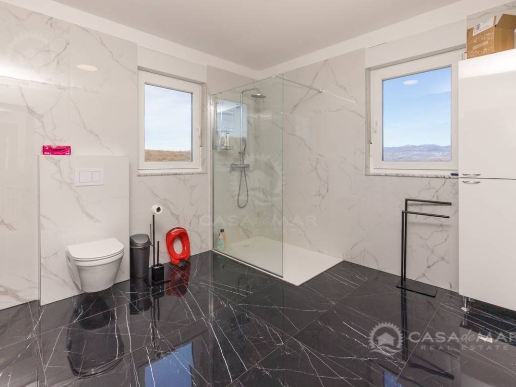Auf dem großzügigen 750 m2 großen Garten gibt es zwei Parkplätze und es besteht die Möglichkeit, ein Schwimmbad, einen Grill, ein Gartenhaus zu bauen. Ein weiterer Vorteil des Gartens ist der Panoramablick auf das Meer.