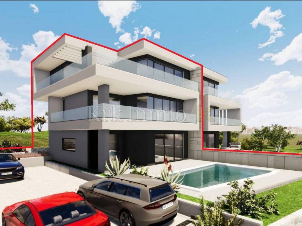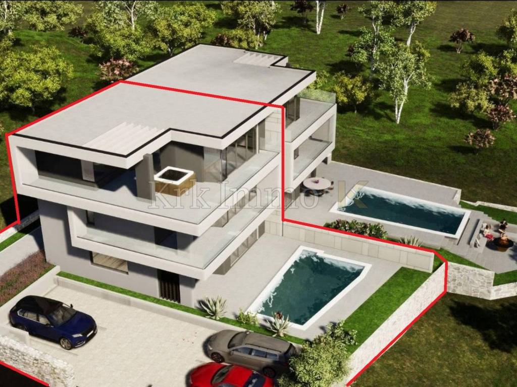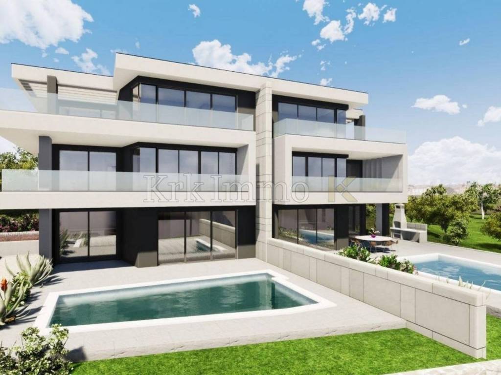 Zum Verkauf steht eine außergewöhnliche Doppelhaushälfte, in einer prestigeträchtigen Lage in der Stadt Krk, nur 300 Meter vom Meer entfernt. Diese Luxusimmobilie umfasst 239 m2 und verteilt sich auf drei Etagen, die durch Innentreppen verbunden sind. Das Haus bietet hervorragenden Komfort, modernes Design und sorgfältig ausgewählte Materialien und ist ideal für diejenigen, die ein qualitativ hochwertiges Leben in der Nähe des Meeres mit allem Luxus und Komfort suchen.