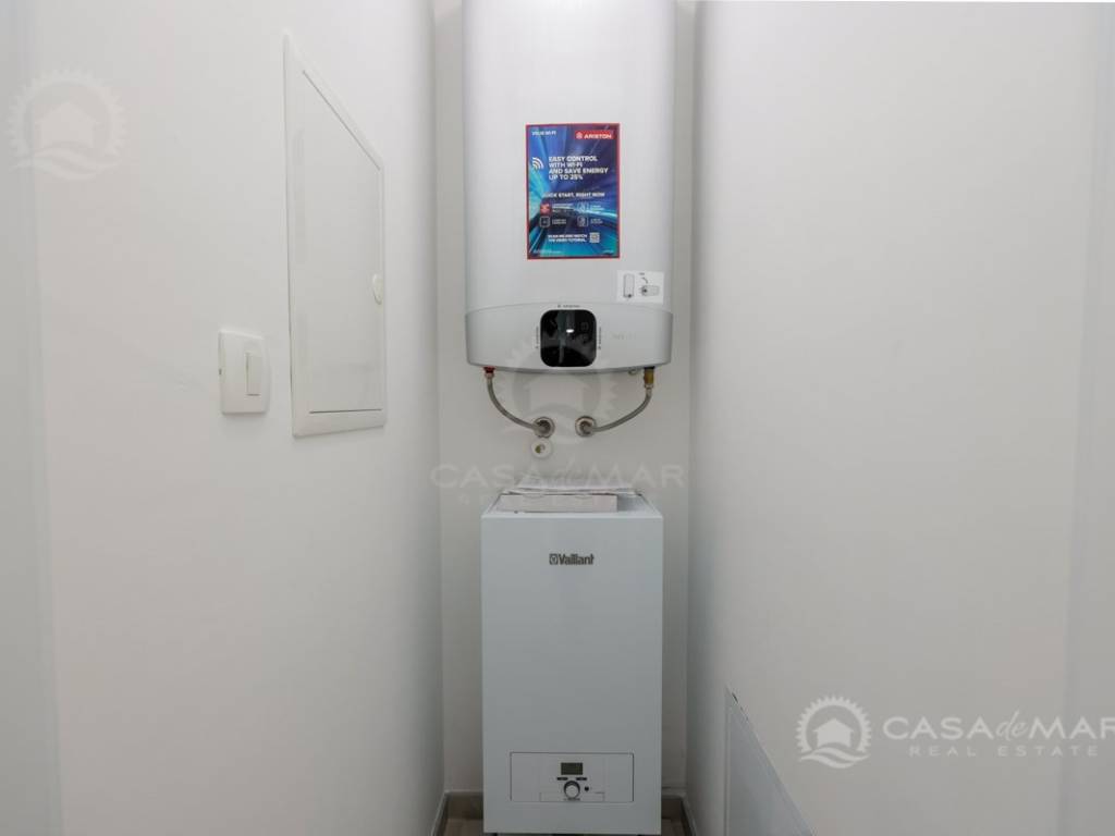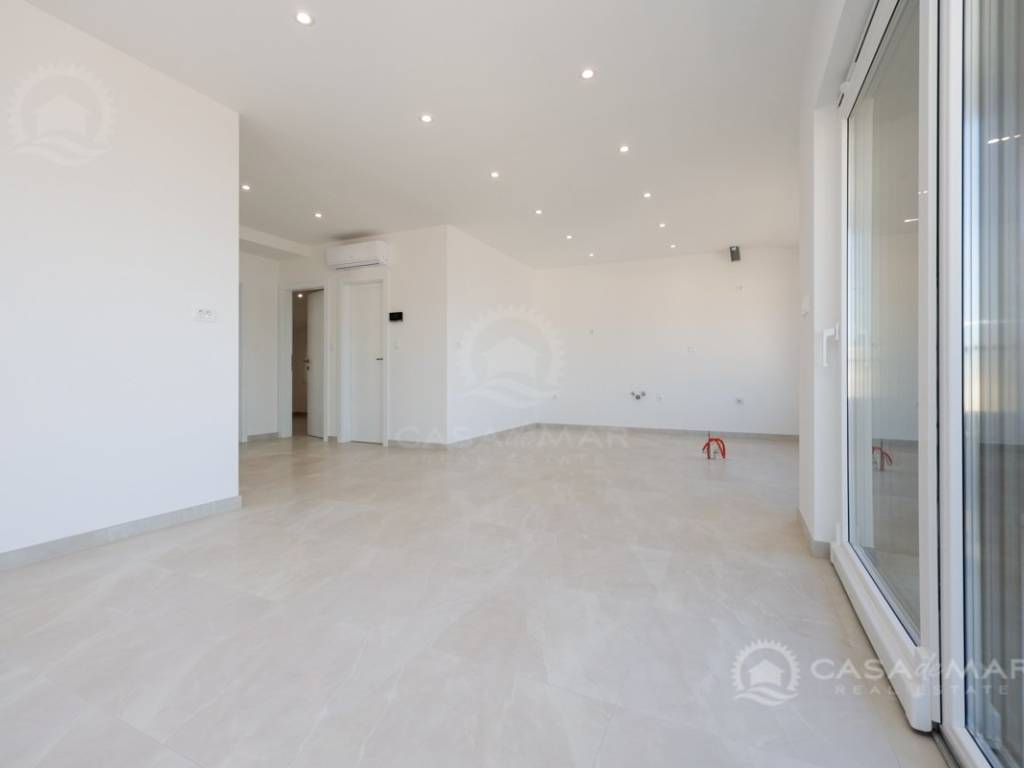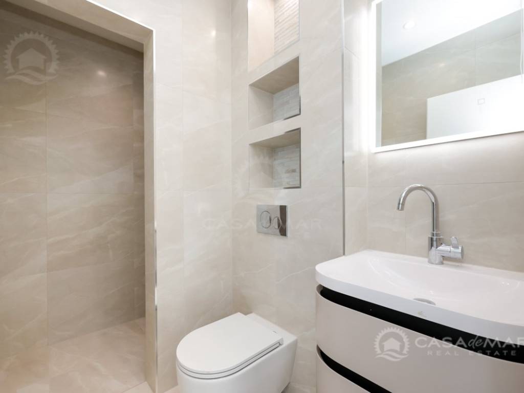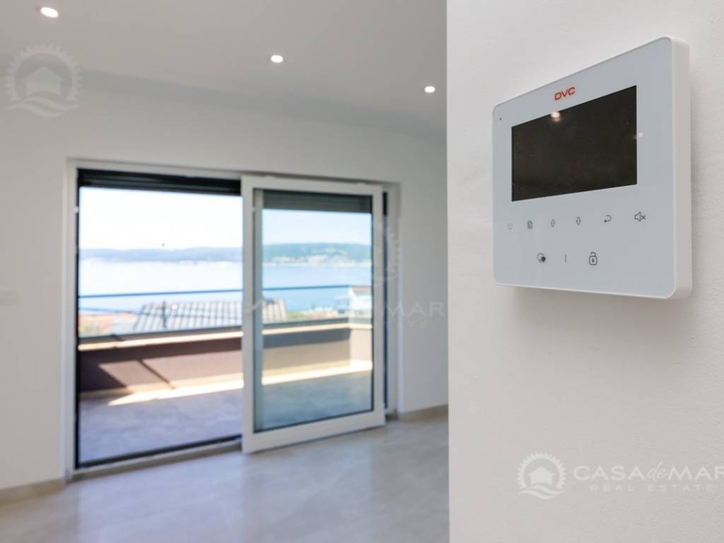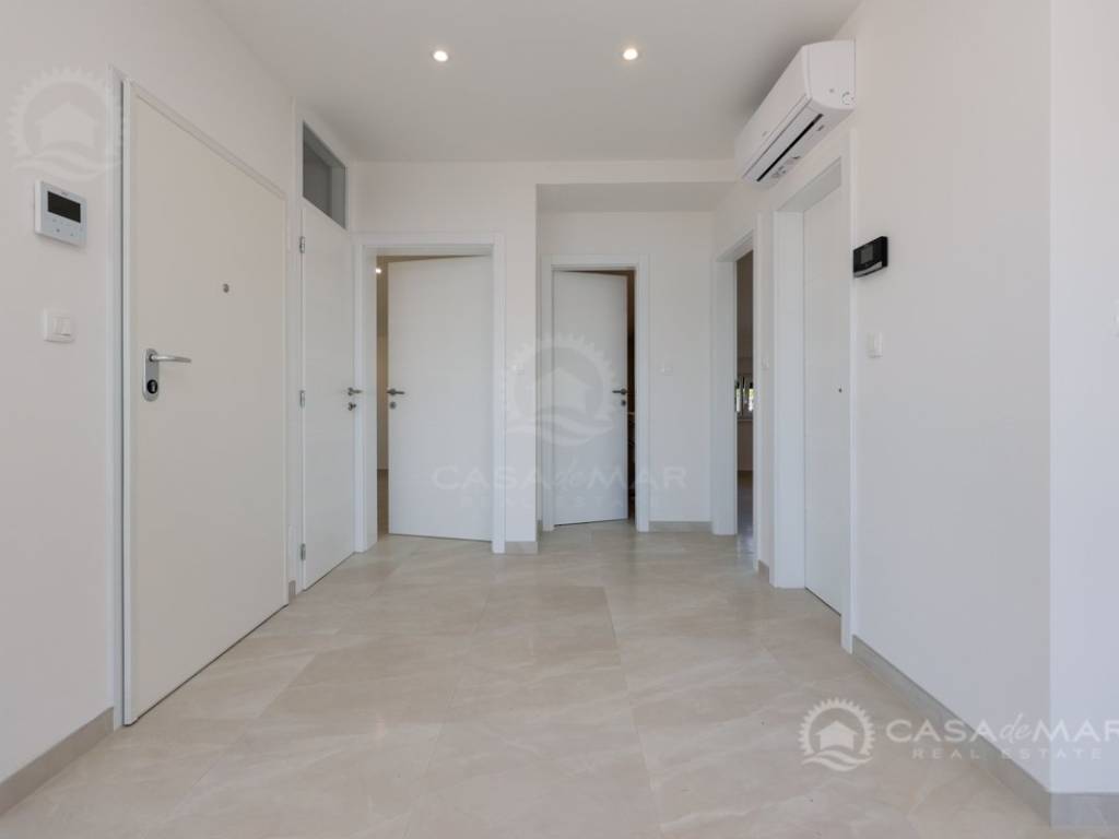 Das Apartment mit einer Gesamtwohnfläche von 71 m2 besteht aus einem Wohnzimmer, einer Küche, einem Essbereich, zwei Badezimmern und zwei Schlafzimmern. Vom Wohnzimmer, der Küche und dem Essbereich, die als offener Raum konzipiert sind, gelangt man auf eine geräumige Terrasse, die einen atemberaubenden Panoramablick auf das Meer bietet.