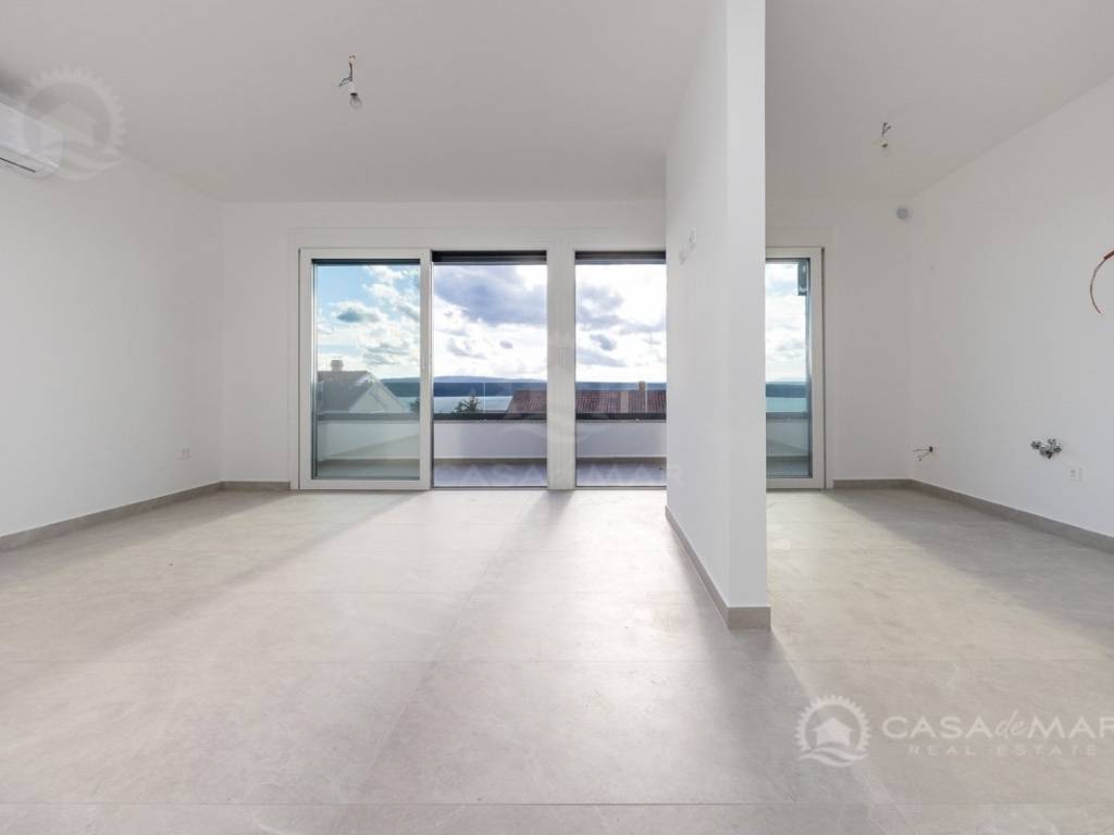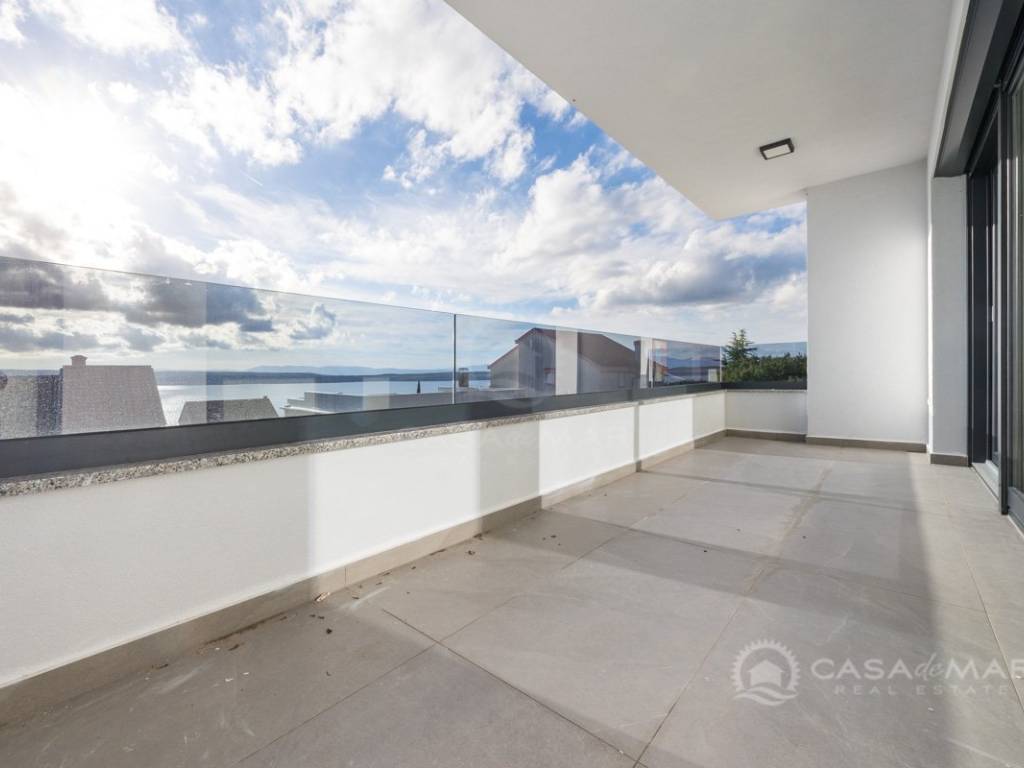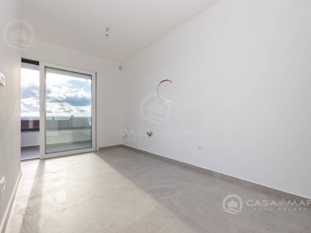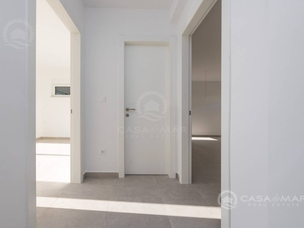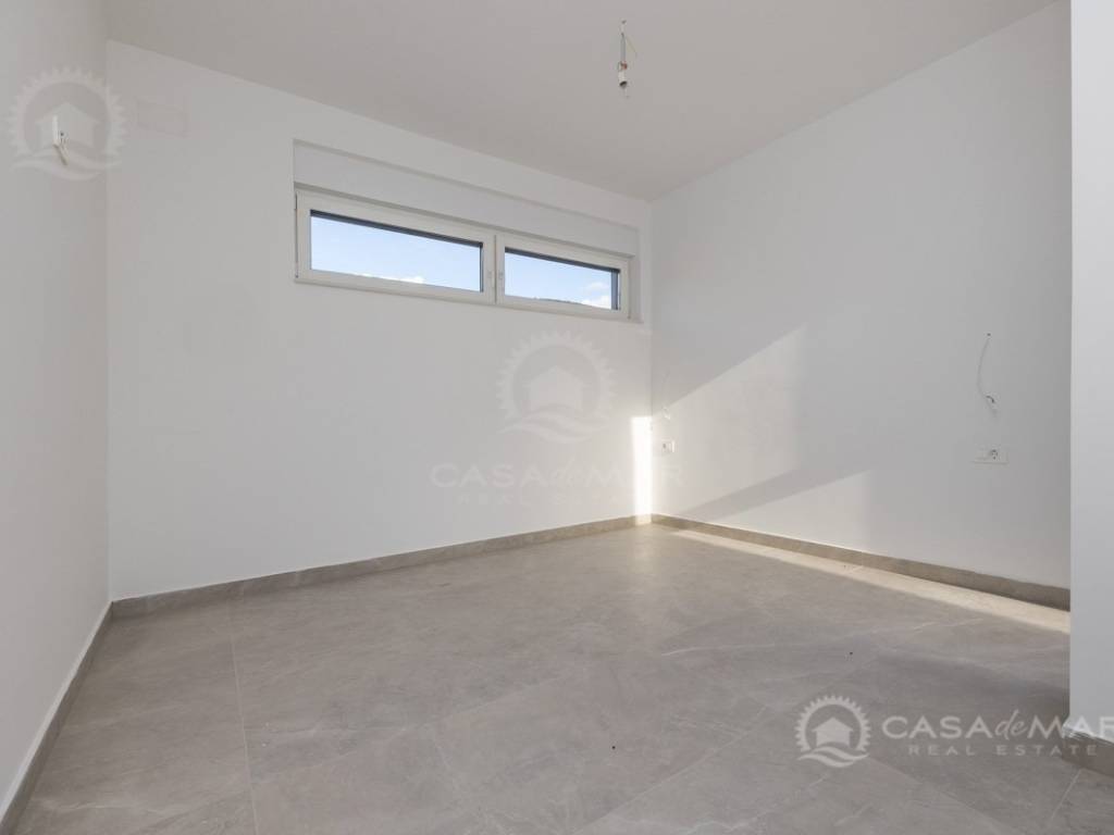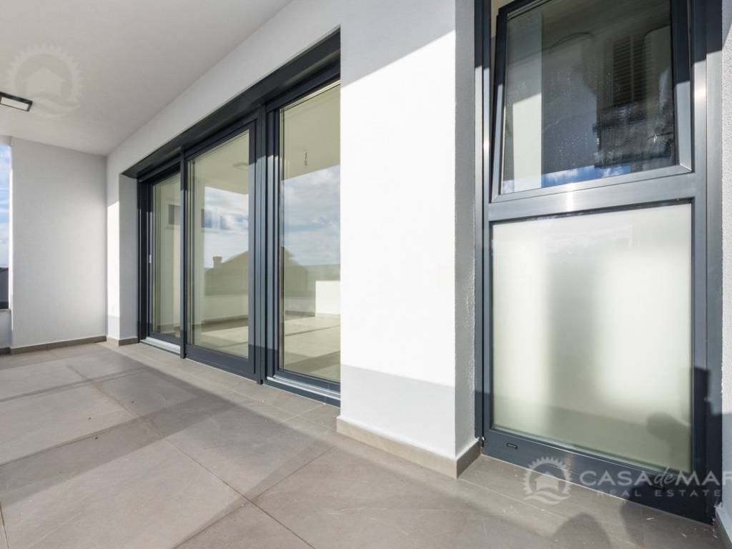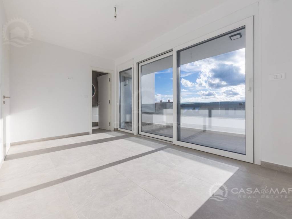 Es besteht aus einem geräumigen und hellen offenen Wohnbereich mit Küche, drei großen Schlafzimmern, drei Badezimmern, zwei Abstellräumen und zwei Terrassen mit offenem Meerblick.