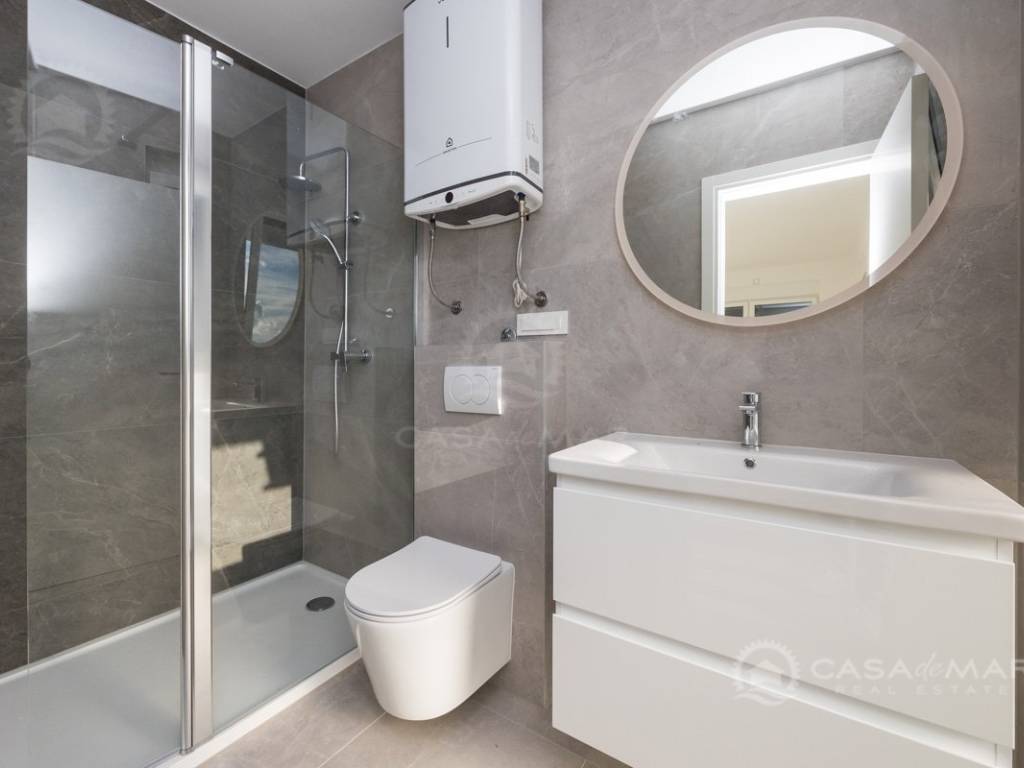 Die elektrische Fußbodenheizung im gesamten Apartment sorgt in den kälteren Monaten für Wärme und Komfort, und die Böden werden aus hochwertiger Keramik bestehen. Eingebaute Klimaanlagen mit Split-System bieten das ganze Jahr über eine optimale Temperatur.