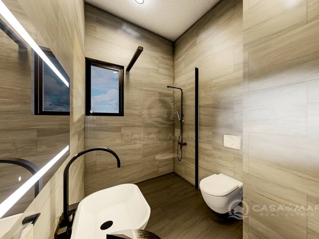 Dieses Penthouse befindet sich im zweiten Stock eines modernen Wohngebäudes mit insgesamt fünf Wohnungen. Der Innenraum von 96 m² umfasst einen geräumigen Flur, ein helles Wohnzimmer, eine elegante Küche mit Essbereich, drei komfortable Schlafzimmer, zwei luxuriöse Badezimmer und einen praktischen Abstellraum.