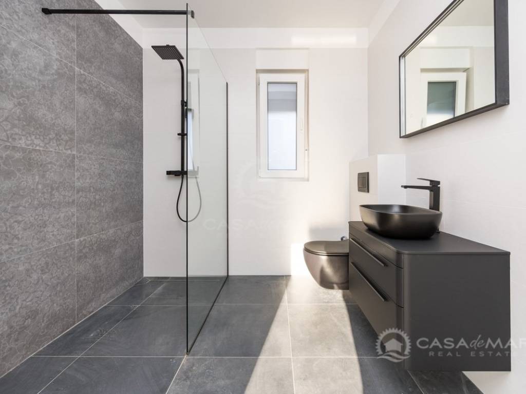 Die Wohnung ist klimatisiert und mit hochwertiger Keramik und Sanitäreinrichtungen ausgestattet, verfügt über Fußbodenheizung im Bad und qualitativ hochwertigen PVC-Fenstern mit Rollläden.