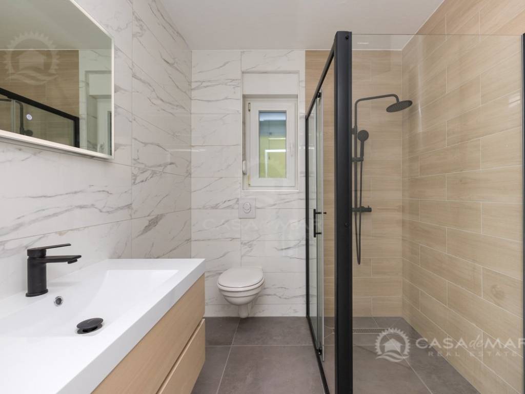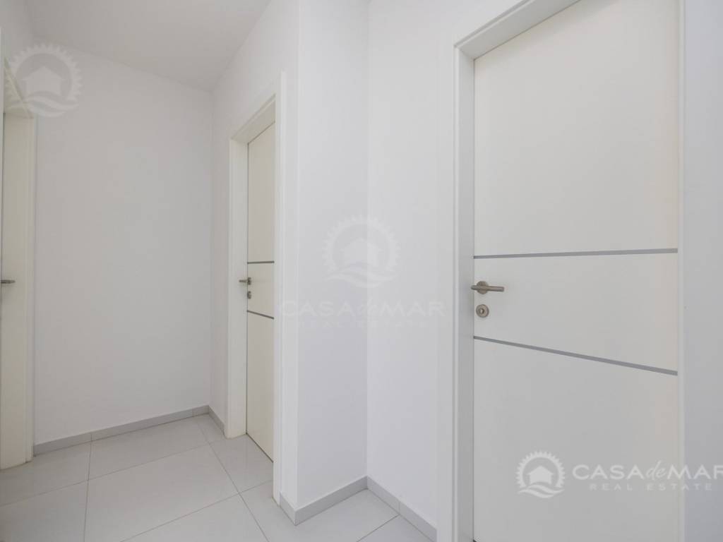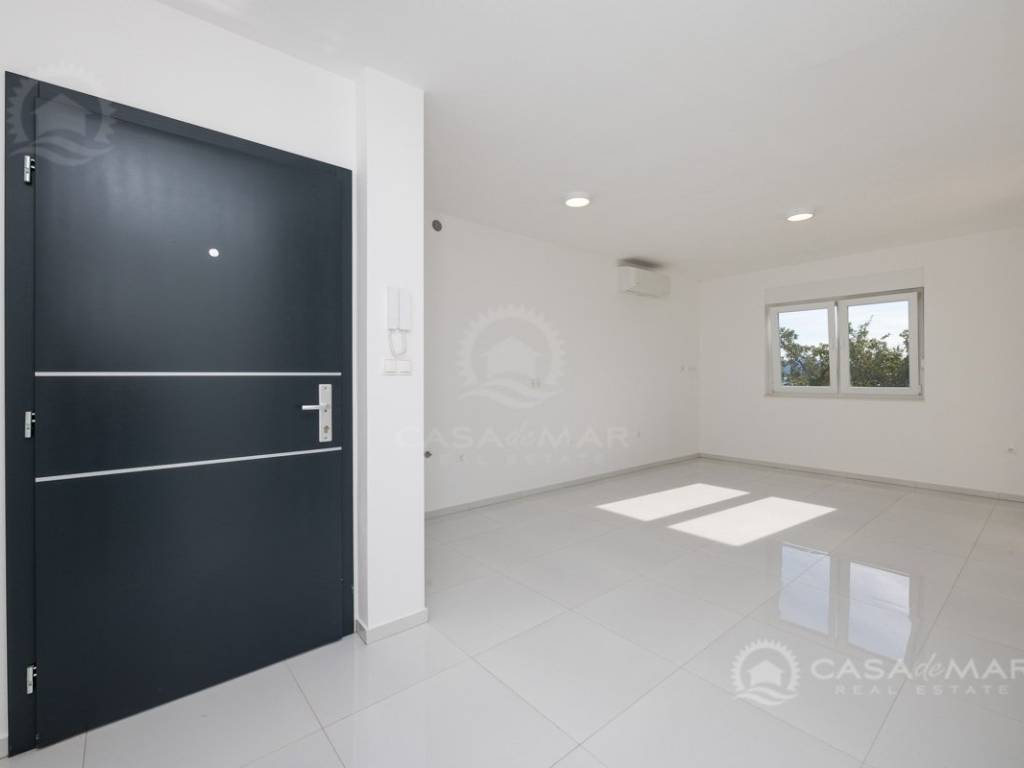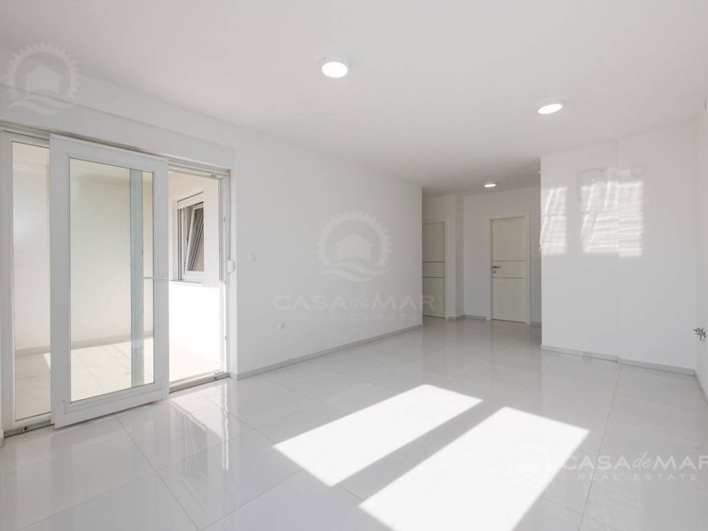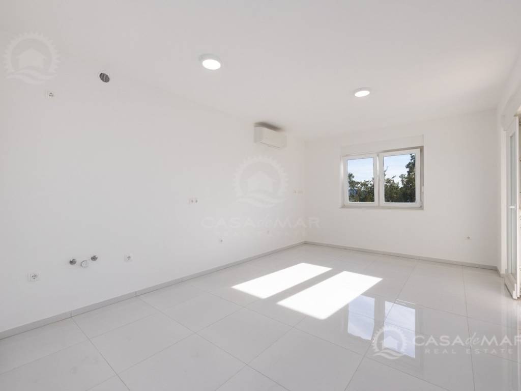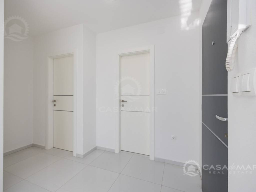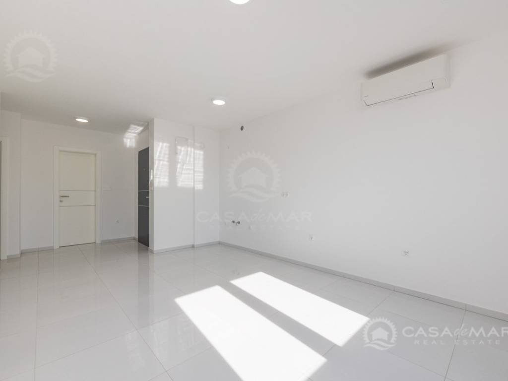 Die Wohnung mit einer Wohnfläche von ca. 60 m2 besteht aus einem Wohnzimmer, einer Küche und einem Essbereich mit Ausgang auf die überdachte Terrasse mit Meerblick, zwei Schlafzimmern und einem modern ausgestatteten Badezimmer. Die Wohnung ist klimatisiert, mit PVC-Fenstern ausgestattet und wird unmöbliert verkauft.