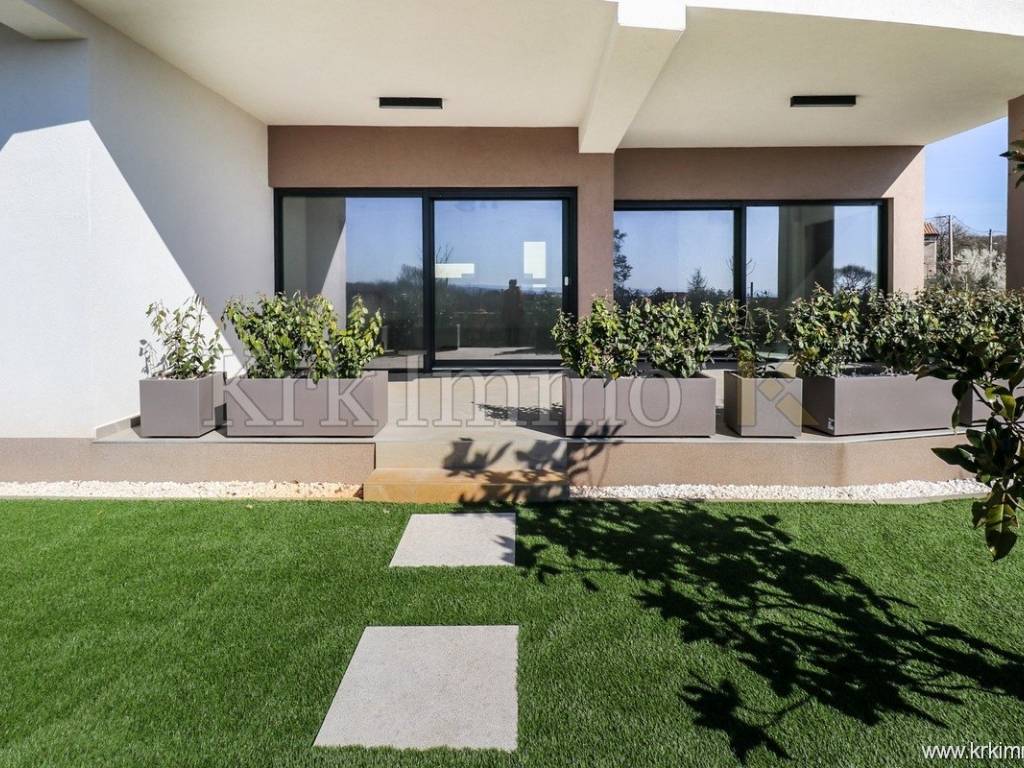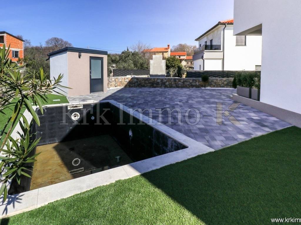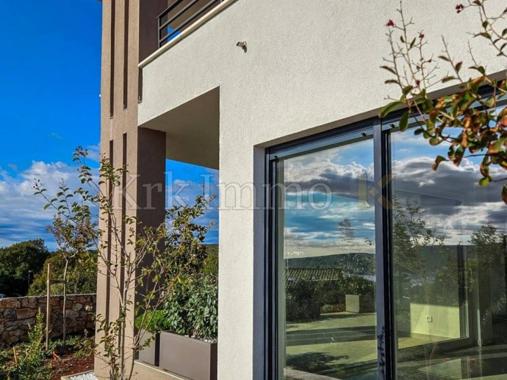 Zum Verkauf steht ein modernes, freistehendes Haus, hervorragend ausgestattet, in ruhiger Lage in der Nähe der Stadt Krk. Diese Luxusimmobilie von 173 m2 verteilt sich auf zwei Etagen und bietet maximalen Komfort und einen herrlichen Blick auf das Meer.