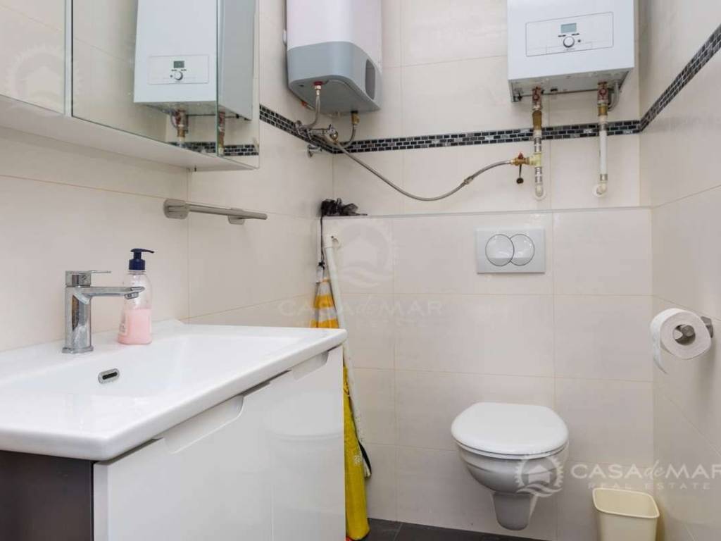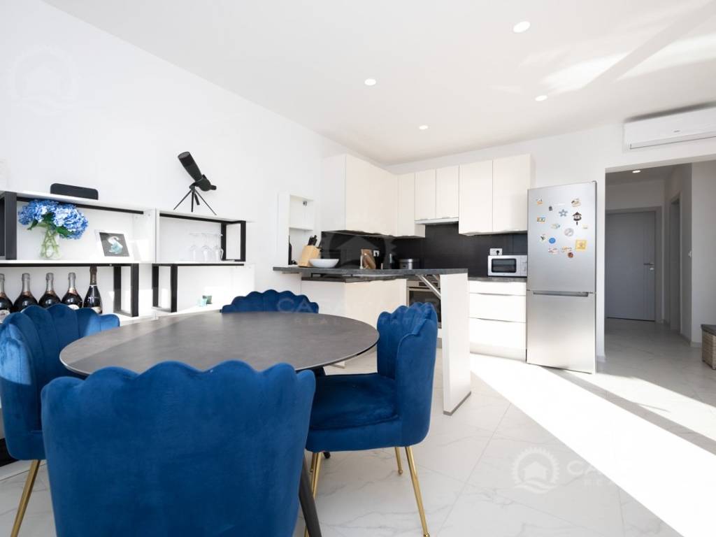 Die Wohnung befindet sich im zweiten Stock eines Neubaus und hat eine Fläche von 71 m². Sie besteht aus einem Eingangsflur, Wohnzimmer, Küche, Essbereich, zwei Schlafzimmern, Badezimmer und einem separaten WC. Vom Wohnzimmer aus gelangt man auf eine Loggia mit wunderschönem Panoramablick auf das Meer.