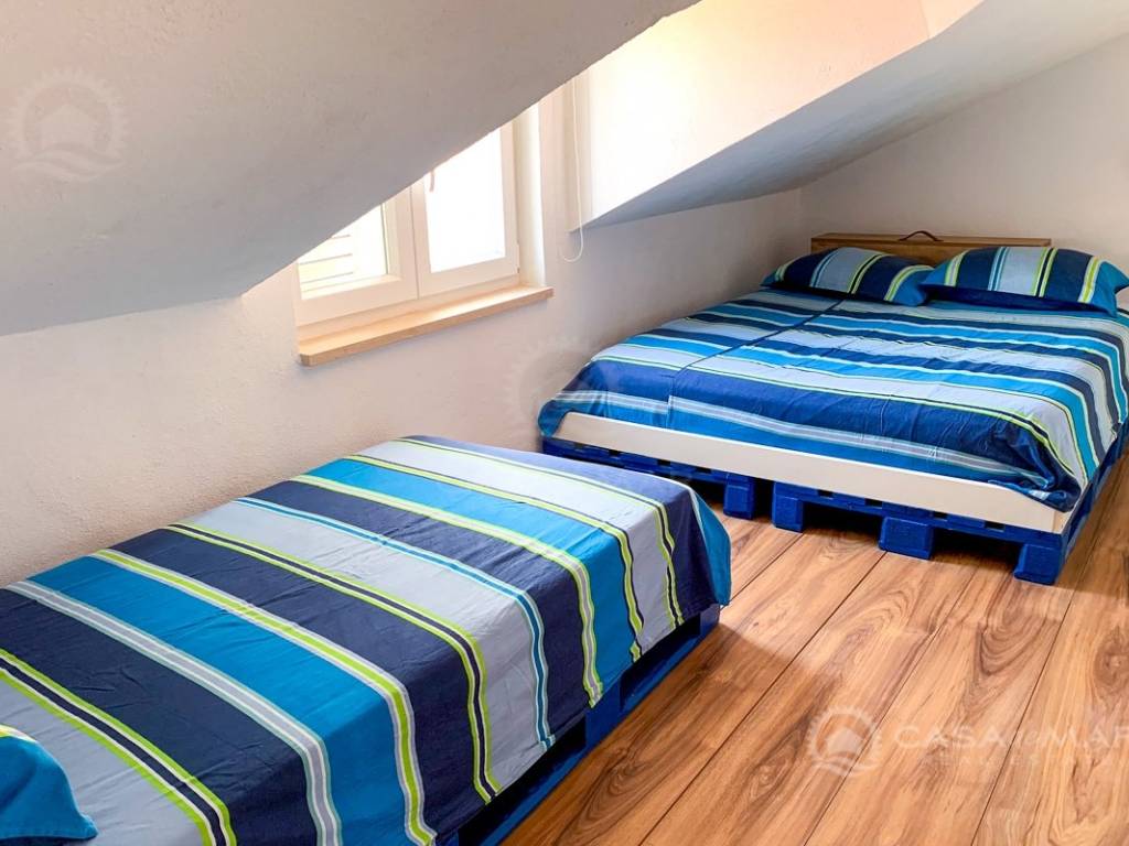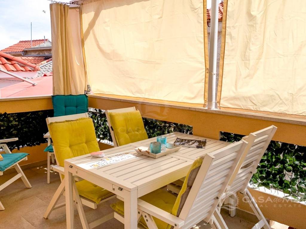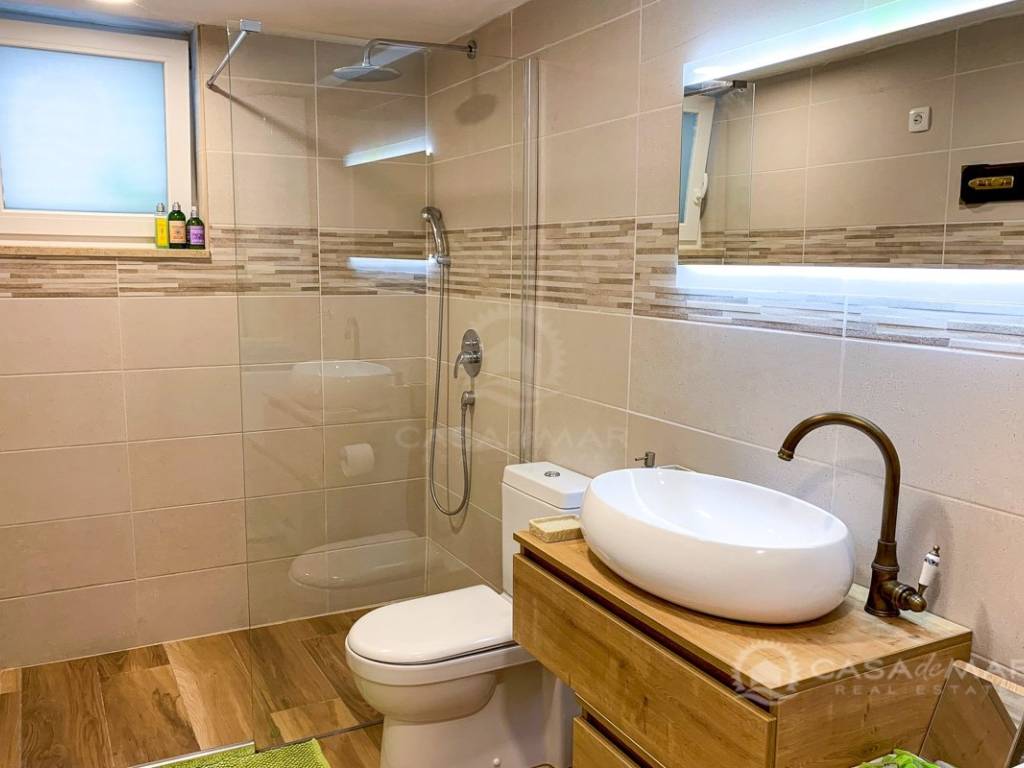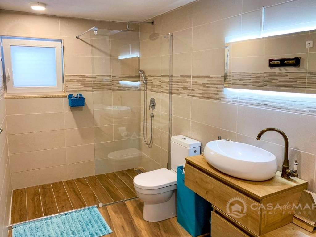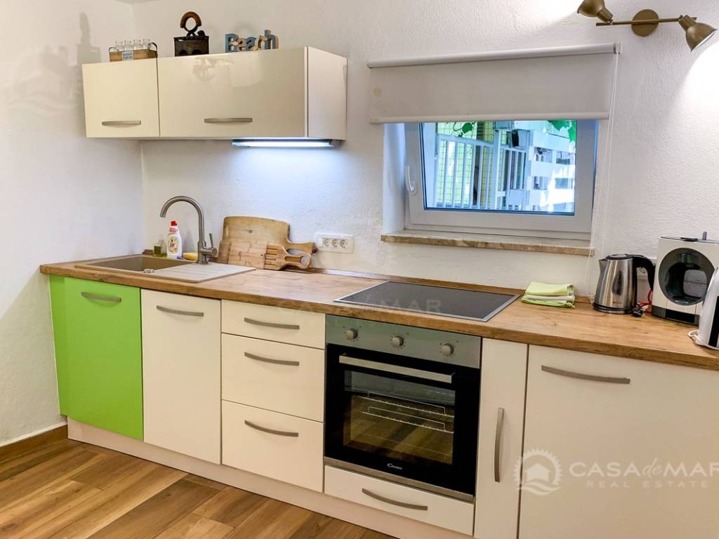 Zum Verkauf steht ein Haus im Herzen von Baška auf der Insel Krk mit zwei komplett ausgestatteten Apartments. Das Haus wurde im Jahr 1904 erbaut und 2018 vollständig renoviert. Im Erdgeschoss befindet sich ein Studio-Apartment mit einer Nettowohnfläche von 26 m² und einem dazugehörigen Garten von 16 m². Über eine Innentreppe gelangt man in ein Zwei-Zimmer-Apartment, das sich über zwei Etagen und eine Galerie erstreckt. Im ersten Stock (Nettowohnfläche 25 m²) befinden sich Küche, Wohnzimmer und Badezimmer. Im zweiten Stock liegt ein Schlafzimmer mit 19 m² und Zugang zu einer 9 m² großen Terrasse. Über eine Treppe im Schlafzimmer gelangt man zur Galerie mit 9 m², die einen herrlichen offenen Blick auf die Bucht von Baška bietet.