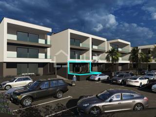 Die Wohnung besteht aus einem Eingangsbereich, einer offenen Küche mit Esszimmer und einem Wohnzimmer mit Zugang zu einer überdachten Terrasse mit Meerblick, zwei Schlafzimmern, einem Badezimmer und einer zusätzlichen Toilette. Zur Wohnung gehört außerdem ein Parkplatz vor dem Gebäude und ein Abstellraum.