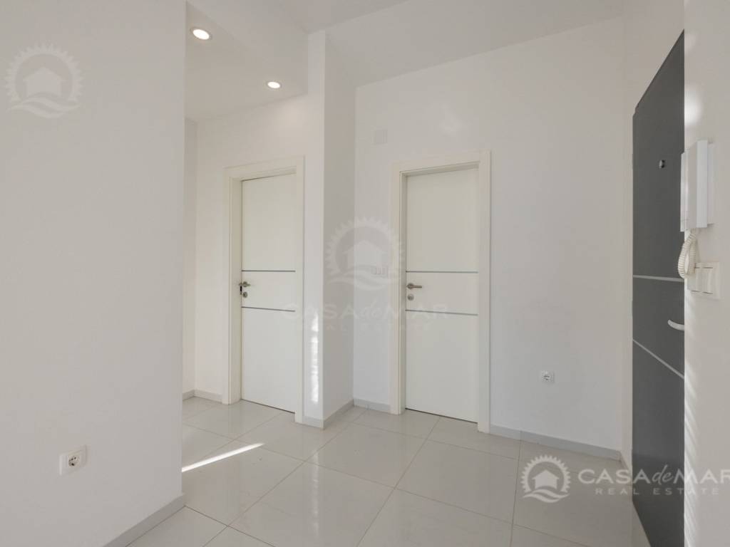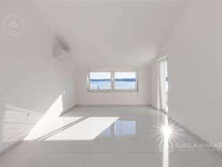 Die Wohnung befindet sich im ersten und zweiten Stock eines Neubaus und besteht tatsächlich aus zwei separaten Wohneinheiten, jeweils eine pro Etage. Sie verfügt über zwei Wohnzimmer mit Küchen und Essbereichen, vier Schlafzimmer sowie zwei Badezimmer. Beide Wohnzimmer haben Zugang zu Terrassen mit wunderschönem offenem bzw. Panoramablick auf das Meer.