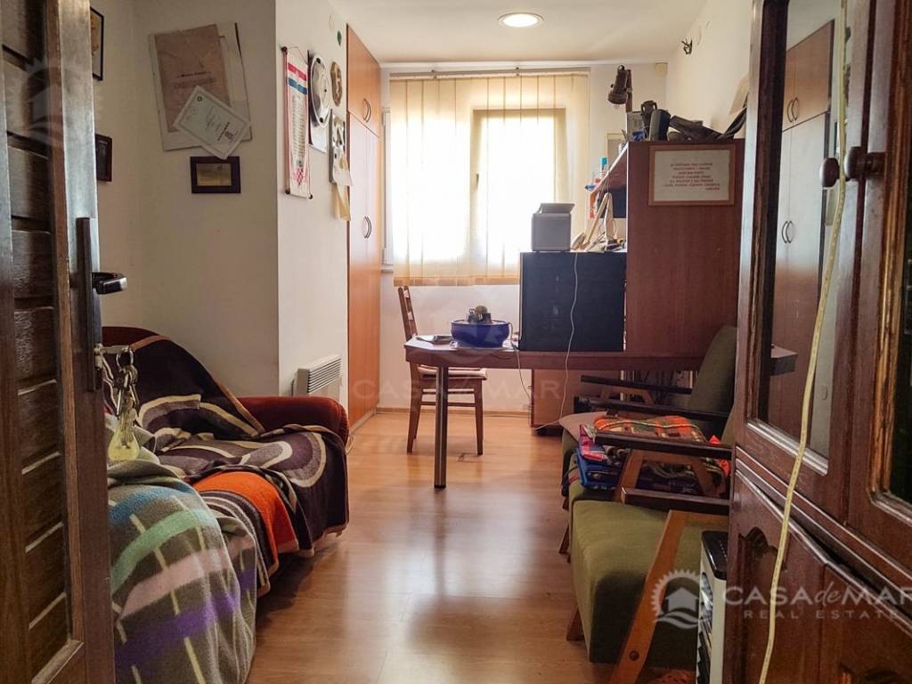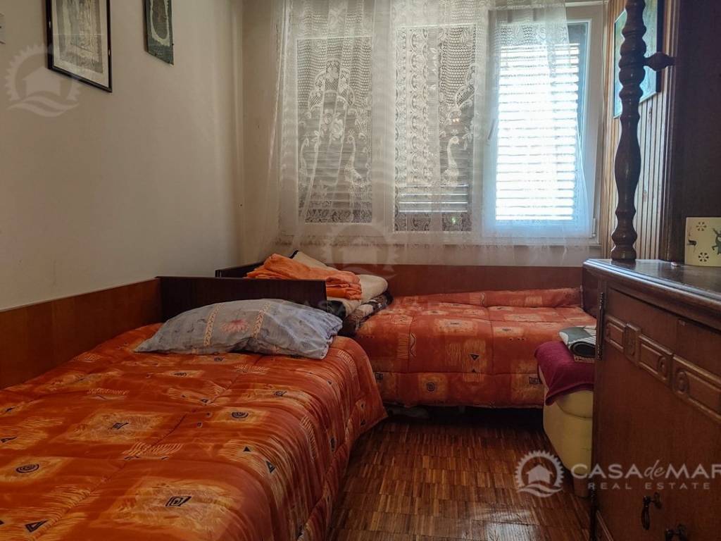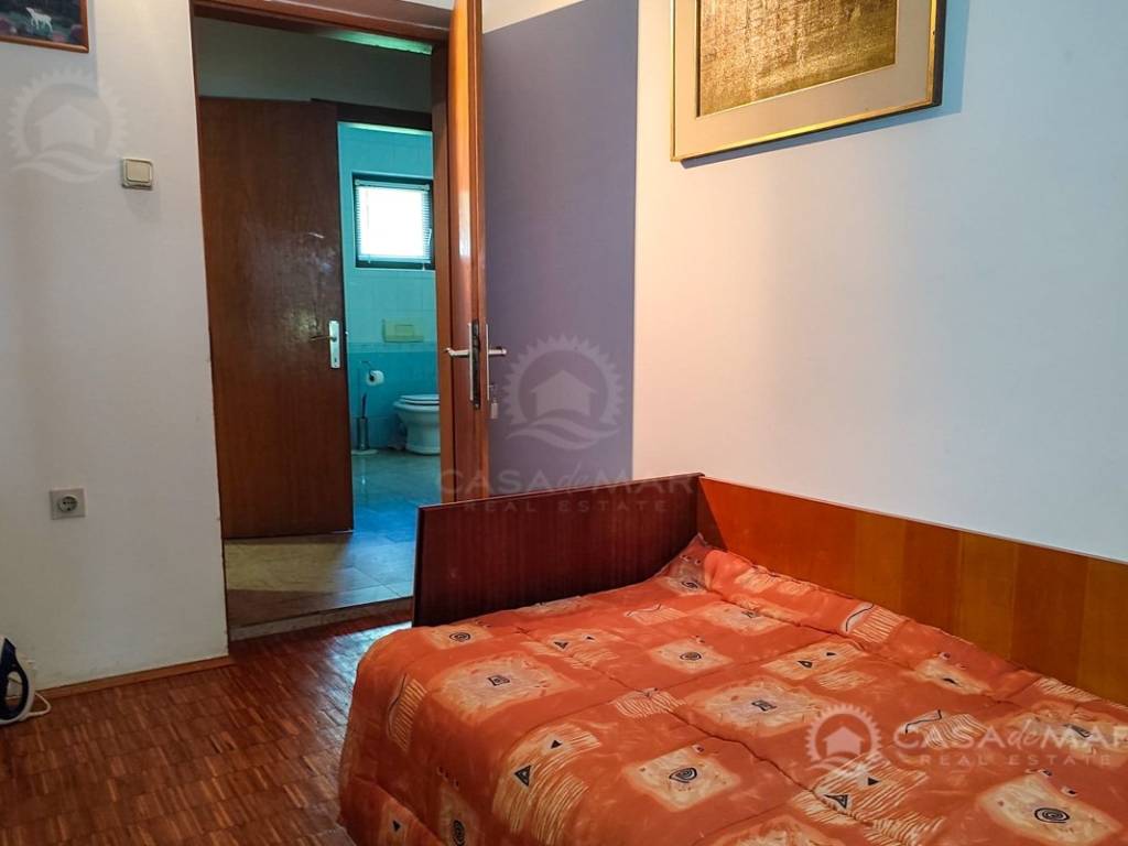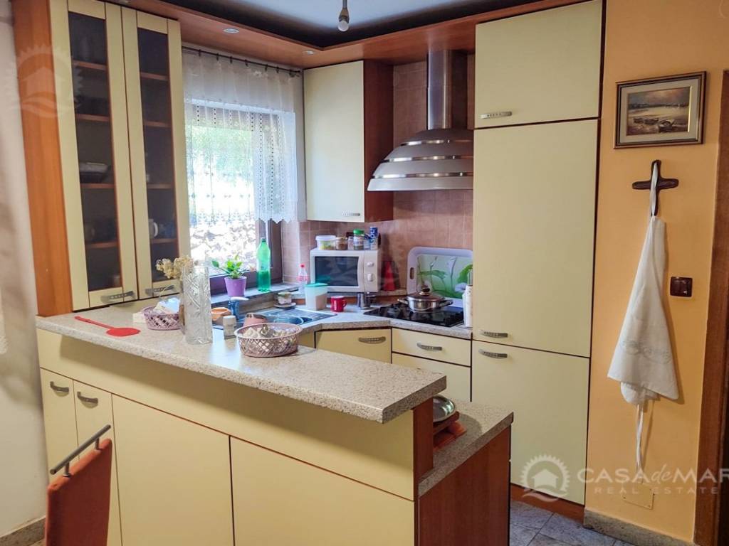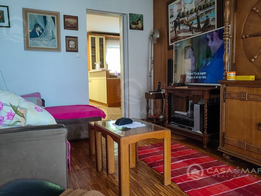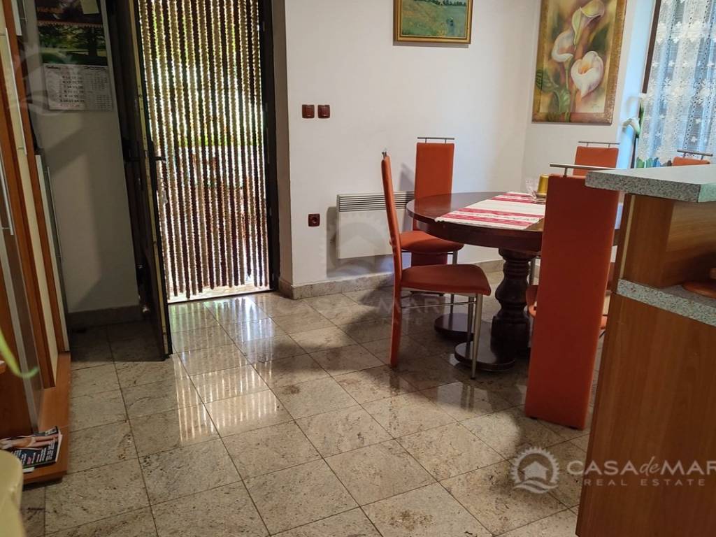 Zum Verkauf steht eine Erdgeschosswohnung in einem Haus in Crikvenica mit einer Gesamtfläche von 111 m² und teilweisem Meerblick. Die Wohnung besteht aus einem Wohnzimmer mit Küche und Essbereich, zwei Schlafzimmern, einem Badezimmer sowie einem zusätzlichen WC mit Waschküche. Zur Wohnung gehört ein 150 m² großer Garten mit zusätzlichen Annehmlichkeiten: Zisterne, Geräteschuppen, Außendusche sowie die Möglichkeit, einen Pool zu bauen. Die Wohnung verfügt über eine Fußbodenheizung und ist für den Einbau eines Kamins vorbereitet. Die Immobilie befindet sich in hervorragender Lage, nur 200 Meter vom Meer entfernt, und es gehören zwei Parkplätze dazu.