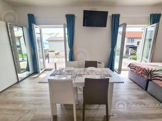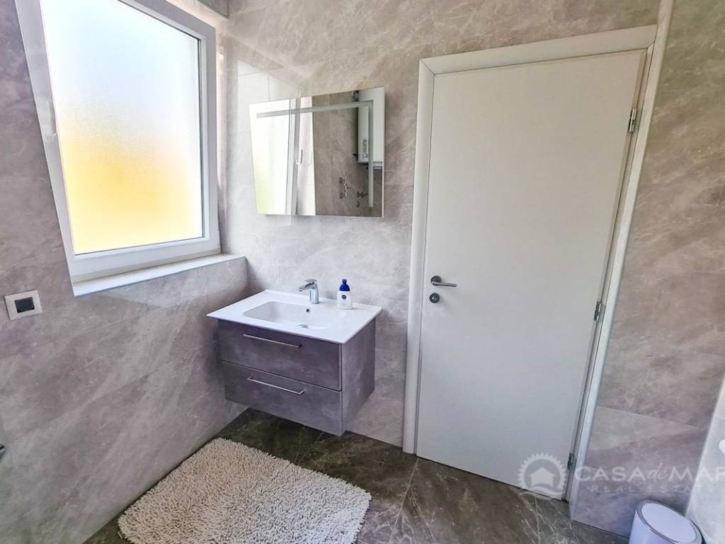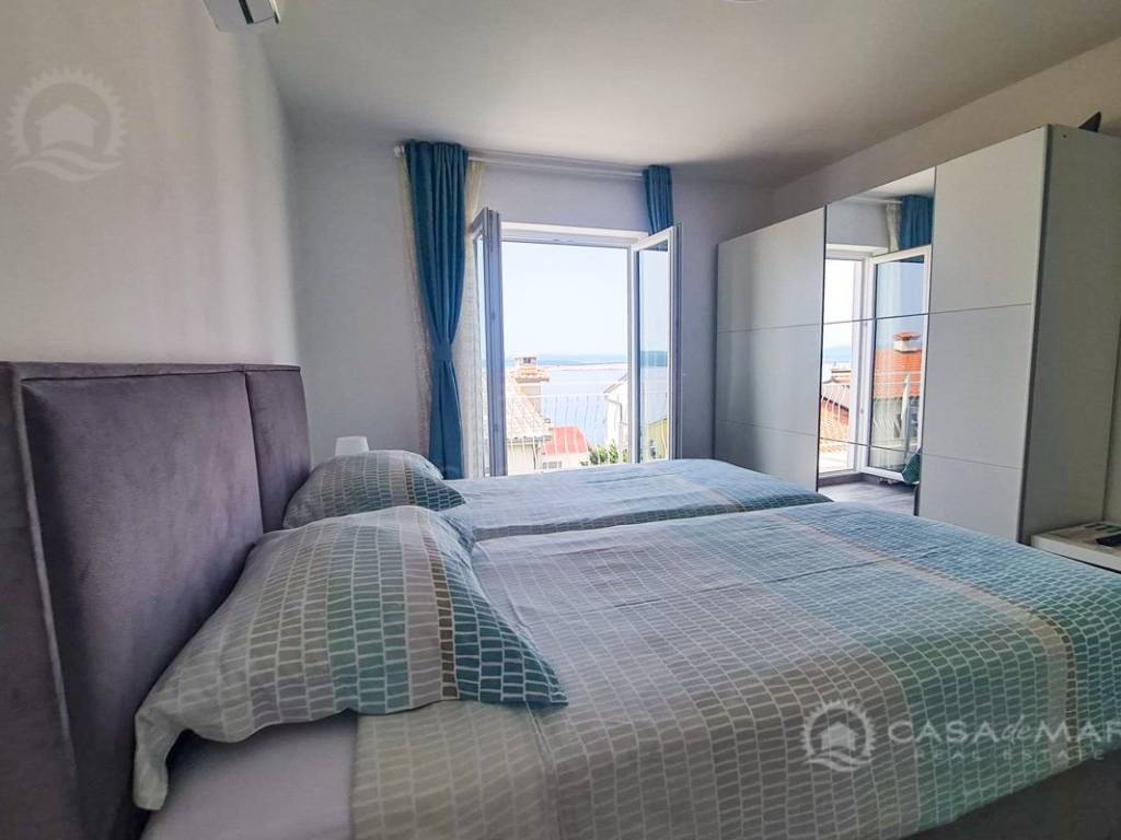 Im ersten Stock befindet sich ein größeres Apartment mit vier Schlafzimmern, Küche, Esszimmer, Wohnzimmer, zwei Bädern und einer Terrasse mit Meerblick.