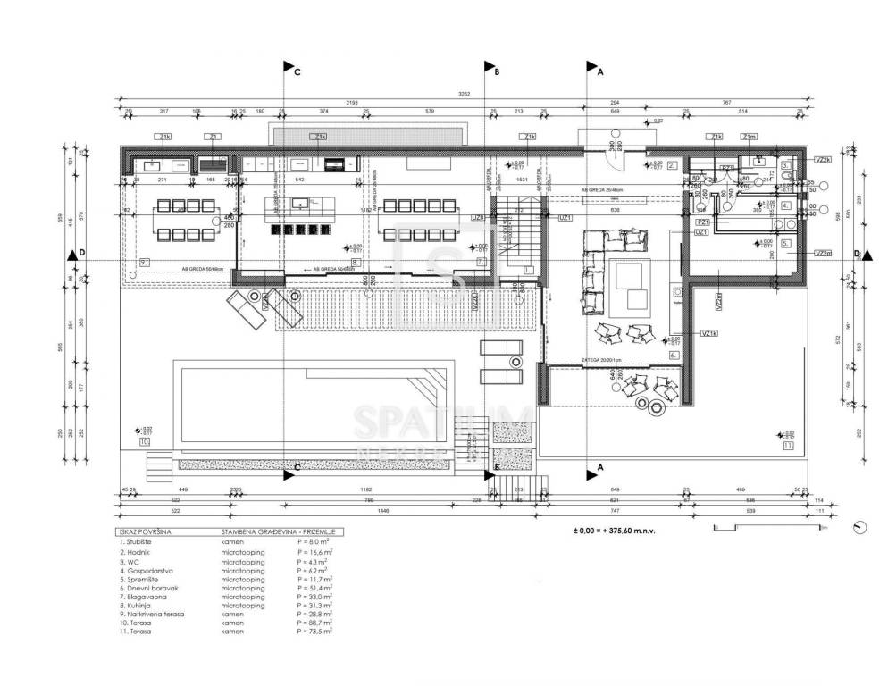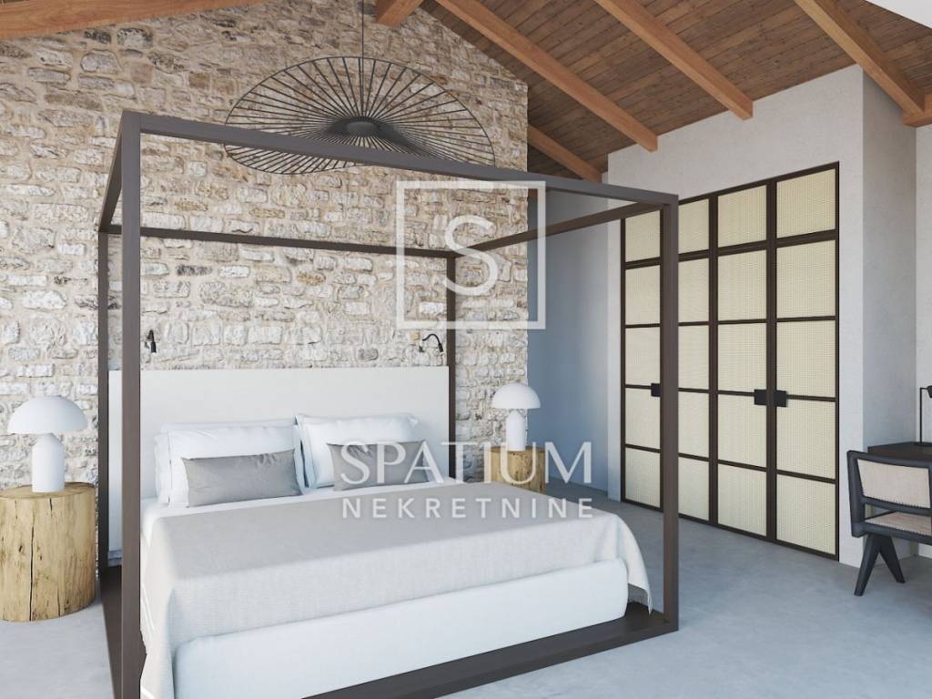 Die geplante Aufteilung erstreckt sich über drei Etagen mit großzügigen Innenräumen, die Innen- und Außenleben harmonisch miteinander verbinden. Wellnessbereiche, stilvolle Wohnräume und Schlafzimmer mit eigenen Badezimmern sind Bestandteil des durchdachten Konzepts. Hochwertige Naturmaterialien, klare Linien und moderne Technik verleihen der Villa ihren eleganten, istrischen Charakter.