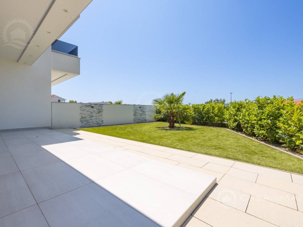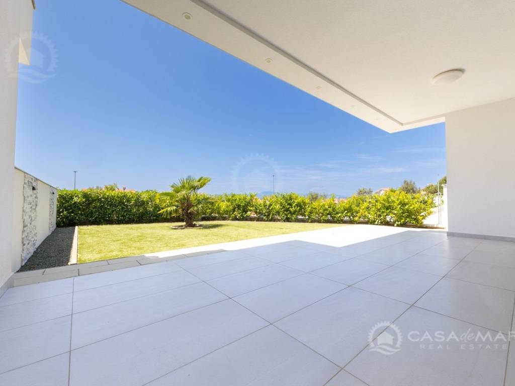 Zur Wohnung gehört ein gepflegter Garten von ca. 100 m², ideal zum Entspannen und für gesellige Stunden im Freien, sowie zwei private Parkplätze auf dem Grundstück. Die Immobilie ist mit hochwertigen Materialien ausgestattet, verfügt über PVC-Fenster, Fußbodenheizung in allen Räumen, Klimaanlagen und Keramikbodenbeläge.