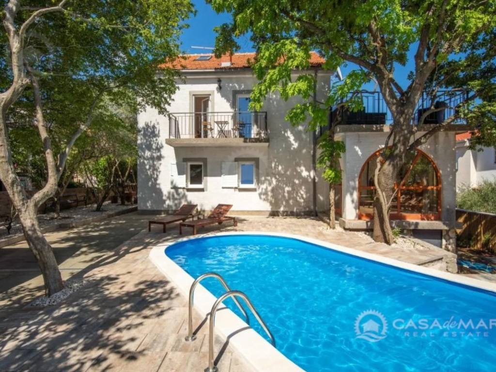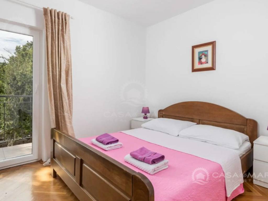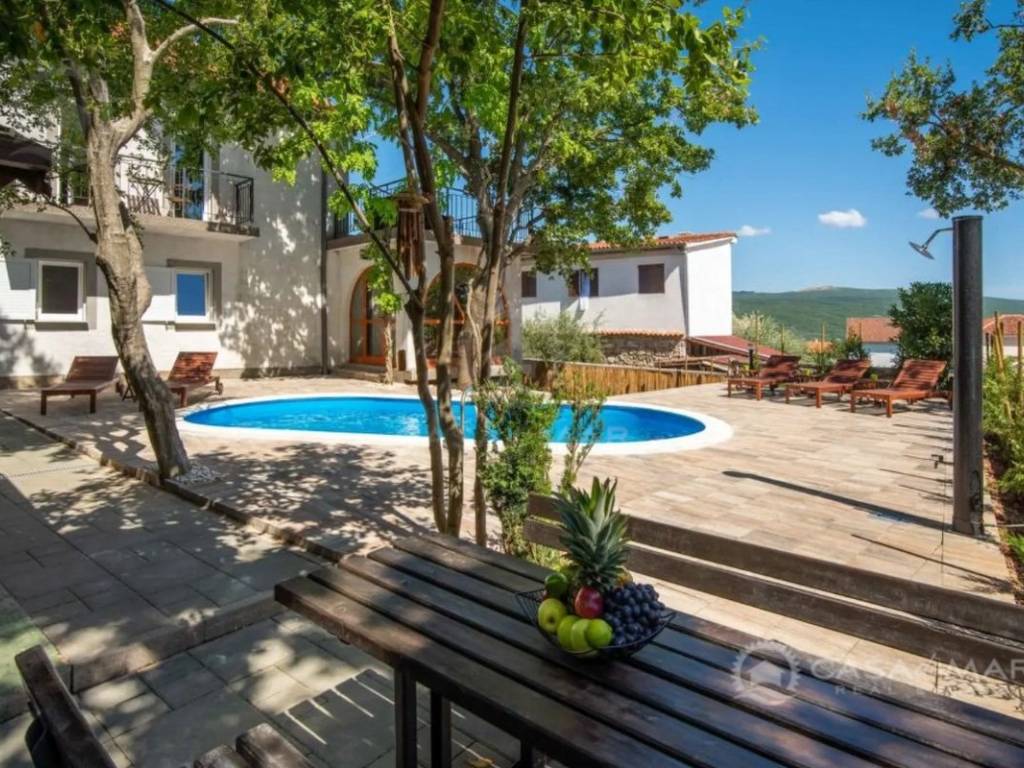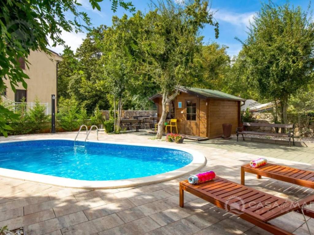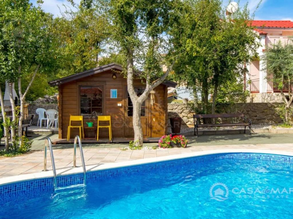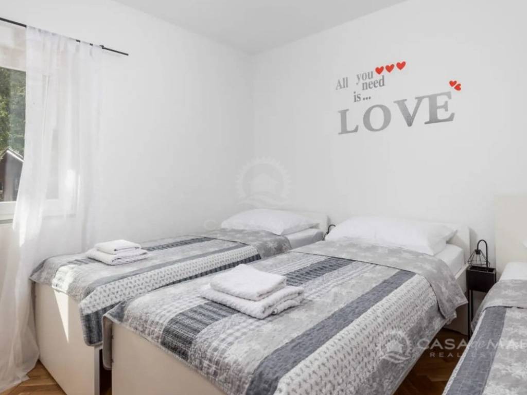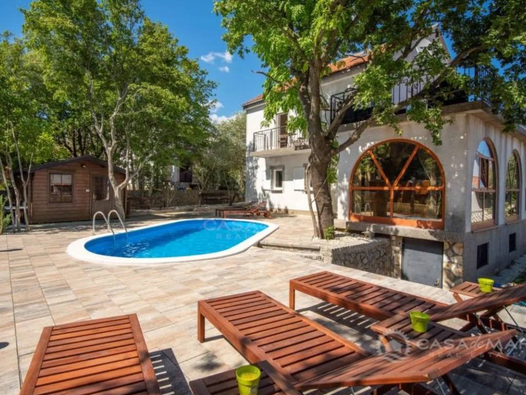 Zum Verkauf steht ein großzügiges Einfamilienhaus in einer ruhigen Siedlung in der Umgebung von Krk, nur 1.000 Meter vom Meer entfernt. Ideal für eine große Familie, zur Vermietung oder als Investition im Tourismussektor. Die Immobilie bietet eine Gesamtwohnfläche von 250 m² und erstreckt sich über vier Etagen – Keller, Erdgeschoss, erstes Obergeschoss und ausgebautes Dachgeschoss – mit insgesamt acht Schlafzimmern und drei Badezimmern.