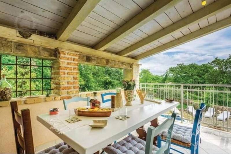 Der Innenraum ist im rustikalen Stil mit liebevoll ausgewählten Details gestaltet. Das Haus wird möbliert und ausgestattet verkauft (ohne persönliche Gegenstände), sodass ein sofortiger Einzug ohne zusätzliche Investitionen möglich ist. Ausgestattet ist es mit einer Zentralheizung für Pellets und Holz, Klimaanlagen sowie PVC- und Holzfenstern.