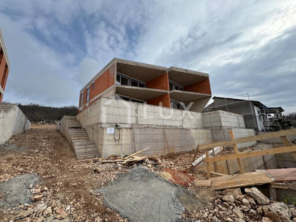 Wir verkaufen eine moderne Doppelhaushälfte im unfertigen Zustand, gelegen in Jadranovo, mit wunderschönem Meerblick.