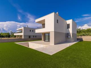In der bezaubernden weiteren Umgebung der Stadt Krk, in einer ruhigen Umgebung mediterraner Natur, befindet sich diese elegante und luxuriöse Villa im Bau, ideal, um einen modernen Lebensstil in Meeresnähe zu genießen. Die Villa erstreckt sich über zwei Etagen und liegt auf einem angelegten Grundstück von ca. 600 m². Schon beim Betreten des Erdgeschosses empfängt Sie ein großzügiger Flur mit eleganter Treppe, die in den ersten Stock führt. Darunter befindet sich eine modern gestaltete Küche mit offenem Ess- und Wohnzimmer, das auf eine überdachte Terrasse führt – der perfekte Ort zum Entspannen neben einem angelegten Sonnendeck und einem privaten Pool mit Wärmepumpe. Mehrwert bieten eine Sauna, ein Gäste-WC, zwei praktische Abstellräume und ein Schlafzimmer mit eigenem Bad. Im Obergeschoss befinden sich drei komfortable Schlafzimmer, von denen das Hauptschlafzimmer über ein eigenes Badezimmer und ein Ankleidezimmer verfügt. Alle Zimmer haben Zugang zu einer großzügigen überdachten Terrasse mit herrlichem Blick auf die umliegende Natur. Diese Luxusvilla ist die perfekte Mischung aus zeitgenössischer Architektur, Komfort und der Nähe zum Meer (nur 1500 Meter entfernt) und ist somit eine ausgezeichnete Wahl als Familienhaus, Ferienvilla oder Investition in die Vermietung an Touristen. Lassen Sie sich diese Gelegenheit nicht entgehen – kontaktieren Sie uns für weitere Informationen und eine Besichtigung dieser außergewöhnlichen Immobilie! Die Immobilie unterliegt der Mehrwertsteuer, der Käufer zahlt also keine Grunderwerbsteuer.