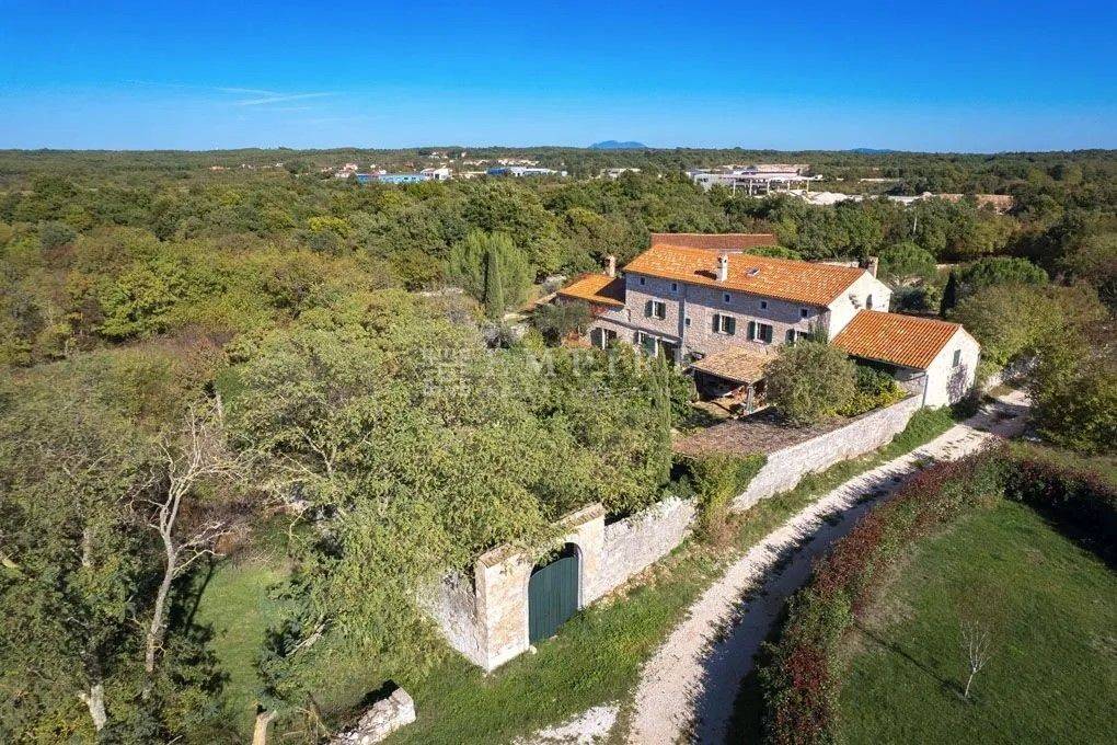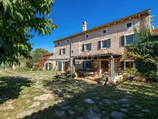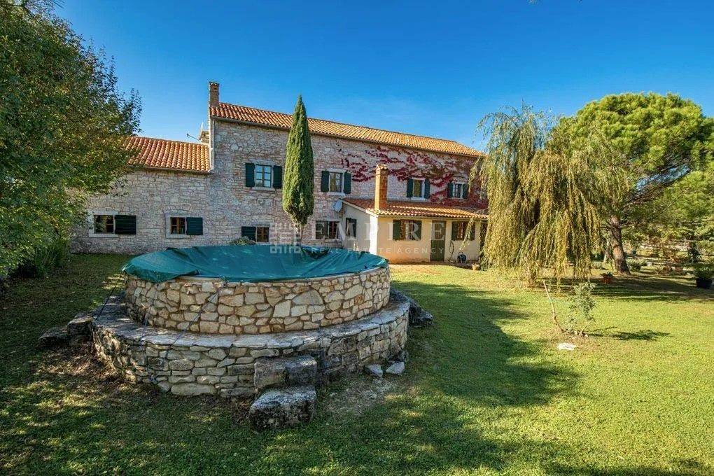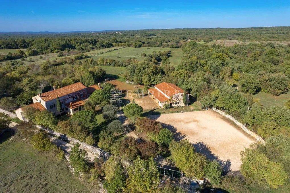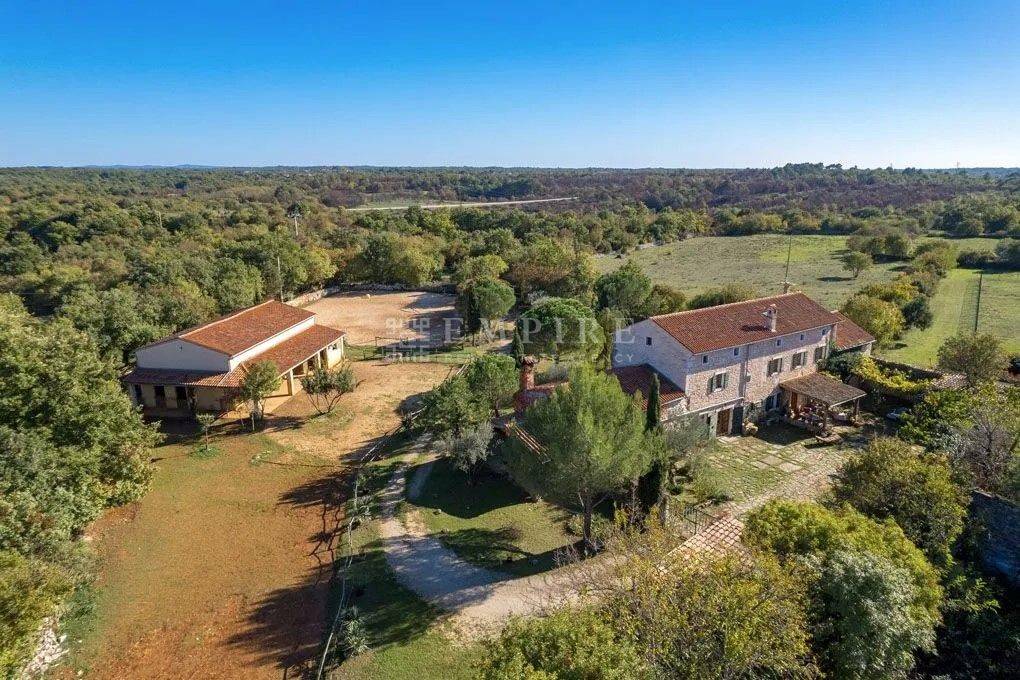 Dieses istrische Anwesen, das um 1902 erbaut wurde, befindet sich auf fast drei Hektar Land im Herzen der malerischen istrischen Landschaft. Etwa 4.000 m² des Grundstücks sind Bauland. Das Anwesen wurde um 2002 vollständig renoviert und mit einem Stall mit vier Boxen und einer großen Reitarena erweitert. Das Wohngebäude wurde mit viel Charme restauriert und dabei auf historische Details geachtet. Alte Steinmauern und sichtbare Deckenbalken, kombiniert mit Natursteinböden und einem offenen Kamin, verleihen ihm einen klassischen istrischen Stil. Im Erdgeschoss befindet sich ein gemütliches zweigeschossiges Wohnzimmer, ein separates Esszimmer und eine geräumige offene Küche mit einem kleinen Frühstückstisch. Ein Gäste-WC, Büro und Abstellraum vervollständigen das Erdgeschoss. Im ersten Stock befinden sich zwei einladende Schlafzimmer und ein großes Badezimmer, zu erreichen über zwei Treppen (eine davon rund). Zusätzlich bietet die Immobilie Ausbaupotential im Dachgeschoss. Die Terrasse und der großzügige Garten laden ein, an heißen Sommertagen am Pool zu entspannen und die Abende mit Freunden und Familie zu genießen. In der Umgebung gibt es hervorragende Konobas, die die Gäste mit hausgemachten Delikatessen und istrischen Grillgerichten verwöhnen. Verbringen Sie entspannende Stunden mit Ihrer Familie und Freunden und schaffen Sie unvergessliche Erinnerungen.