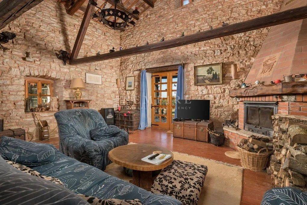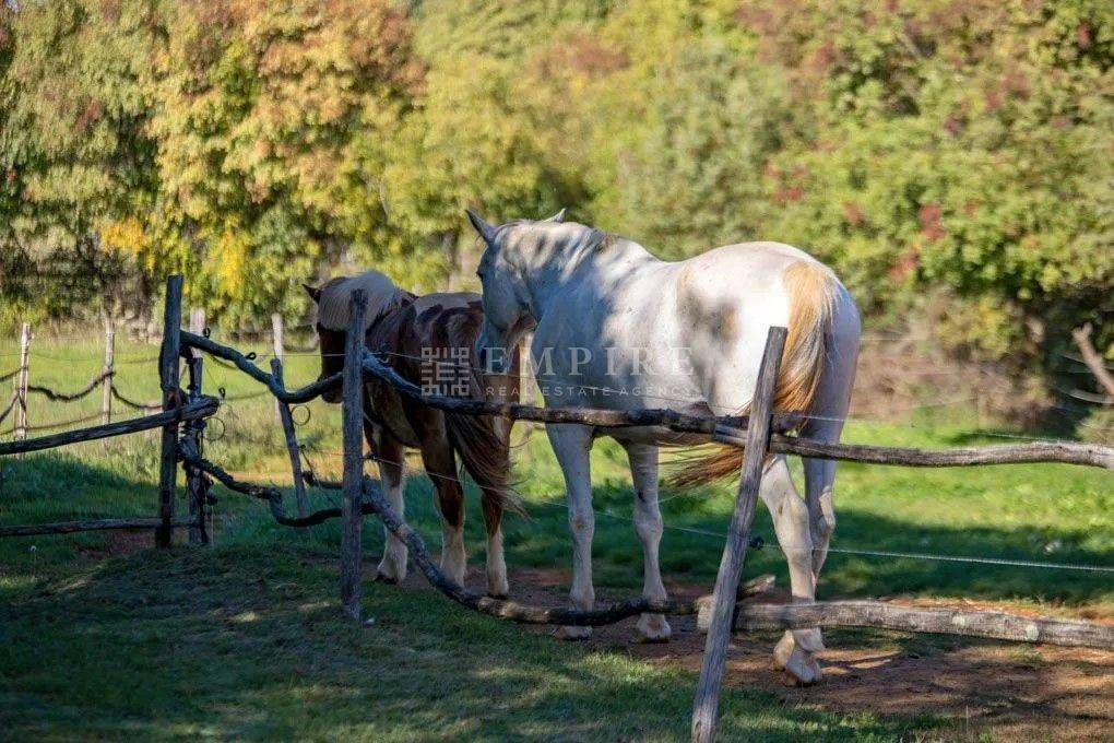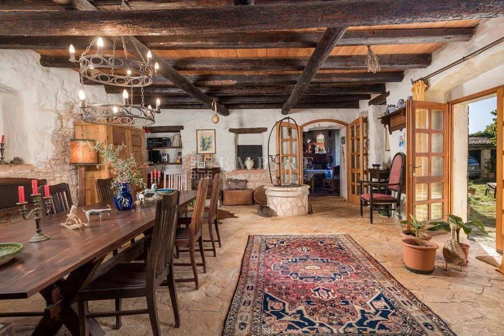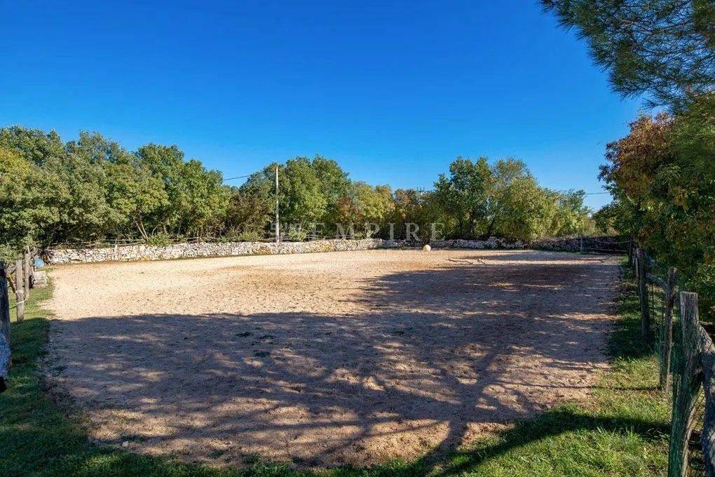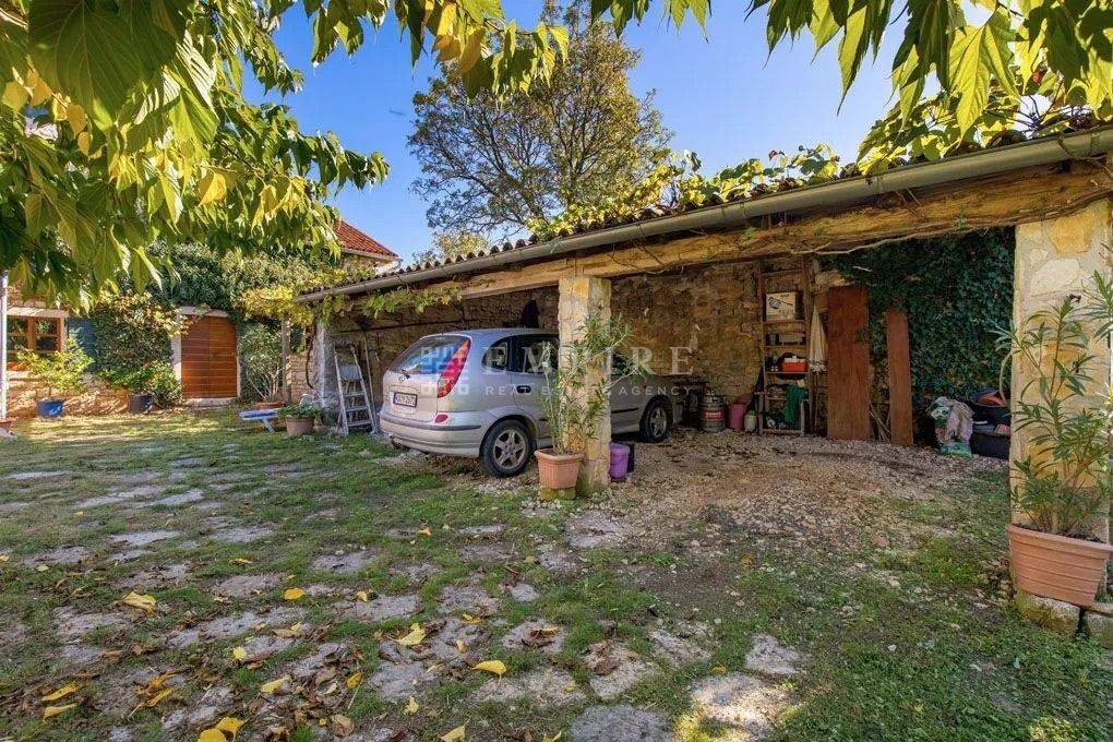 Dieses istrische Anwesen, das um 1902 erbaut wurde, befindet sich auf fast drei Hektar Land im Herzen der malerischen istrischen Landschaft. Etwa 4.000 m² des Grundstücks sind Bauland. Das Anwesen wurde um 2002 vollständig renoviert und mit einem Stall mit vier Boxen und einer großen Reitarena erweitert. Das Wohngebäude wurde mit viel Charme restauriert und dabei auf historische Details geachtet. Alte Steinmauern und sichtbare Deckenbalken, kombiniert mit Natursteinböden und einem offenen Kamin, verleihen ihm einen klassischen istrischen Stil. Im Erdgeschoss befindet sich ein gemütliches zweigeschossiges Wohnzimmer, ein separates Esszimmer und eine geräumige offene Küche mit einem kleinen Frühstückstisch. Ein Gäste-WC, Büro und Abstellraum vervollständigen das Erdgeschoss. Im ersten Stock befinden sich zwei einladende Schlafzimmer und ein großes Badezimmer, zu erreichen über zwei Treppen (eine davon rund). Zusätzlich bietet die Immobilie Ausbaupotential im Dachgeschoss. Die Terrasse und der großzügige Garten laden ein, an heißen Sommertagen am Pool zu entspannen und die Abende mit Freunden und Familie zu genießen. In der Umgebung gibt es hervorragende Konobas, die die Gäste mit hausgemachten Delikatessen und istrischen Grillgerichten verwöhnen. Verbringen Sie entspannende Stunden mit Ihrer Familie und Freunden und schaffen Sie unvergessliche Erinnerungen.