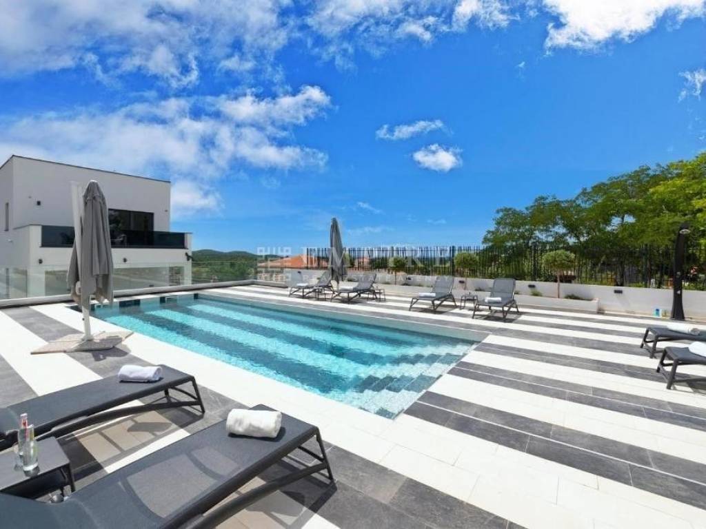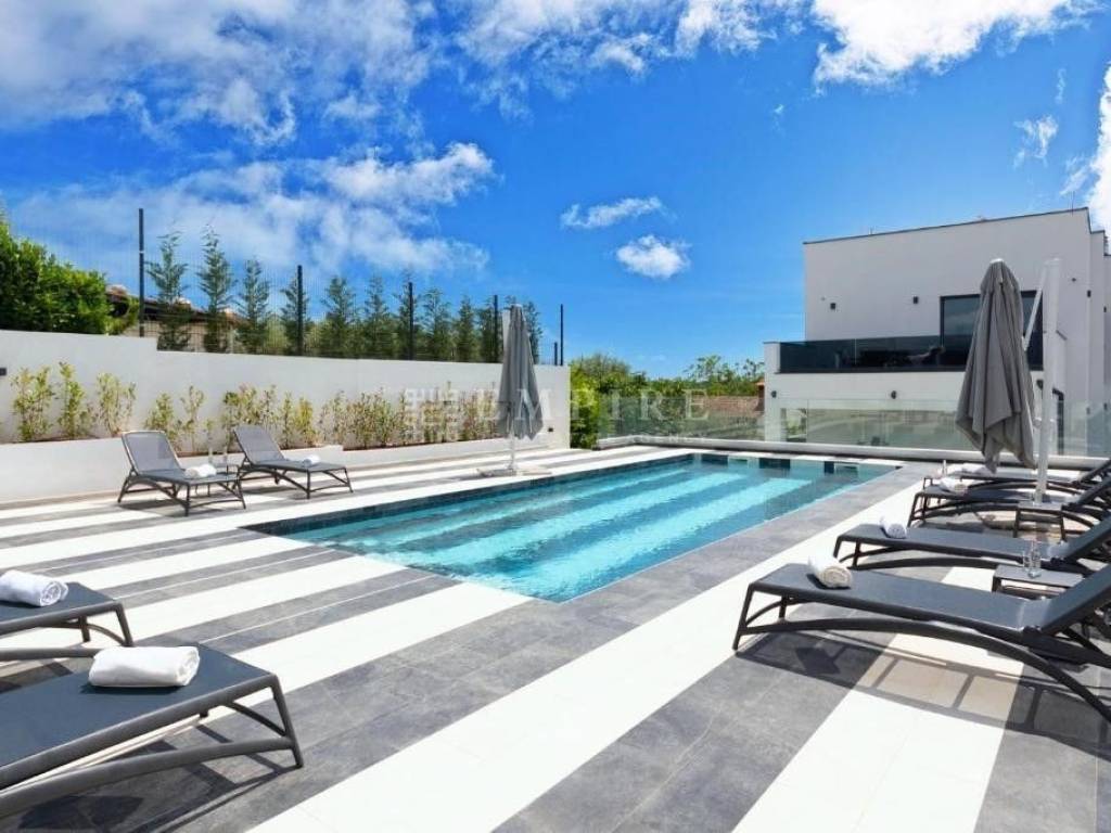 Luxusvilla mit Tennisplatz, Pool und Meerblick. Sie befindet sich in einem ruhigen, kleinen Ort in der Nähe des Meeres und von Touristenzentren, auf einem großen Grundstück von etwa 3.800 m2. Im Keller befinden sich Entspannungsräume wie ein Billardraum, ein Heimkino, der Heizungsraum und ein Abstellraum. Im Erdgeschoss gibt es eine Küche mit Essbereich, ein Schlafzimmer mit eigenem Badezimmer und ein großes Wohnzimmer mit Zugang zu einer schönen Terrasse und einem mediterranen Garten mit großem beheizten Pool, Sonnenterrasse, Jacuzzi, privatem Multifunktionsspielplatz, Fitnessraum und Sommerküche. Der erste Stock ist über eine Innentreppe zugänglich und verfügt über drei Schlafzimmer mit Badezimmer en suite und zwei Balkone. Das Haus ist mit Fußbodenheizung, Wärmepumpen, Klimaanlage und Solarpaneelen ausgestattet. Für weitere Informationen stehen wir gerne zur Verfügung!