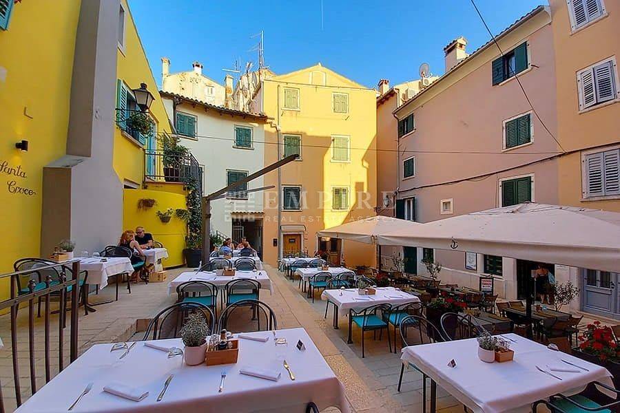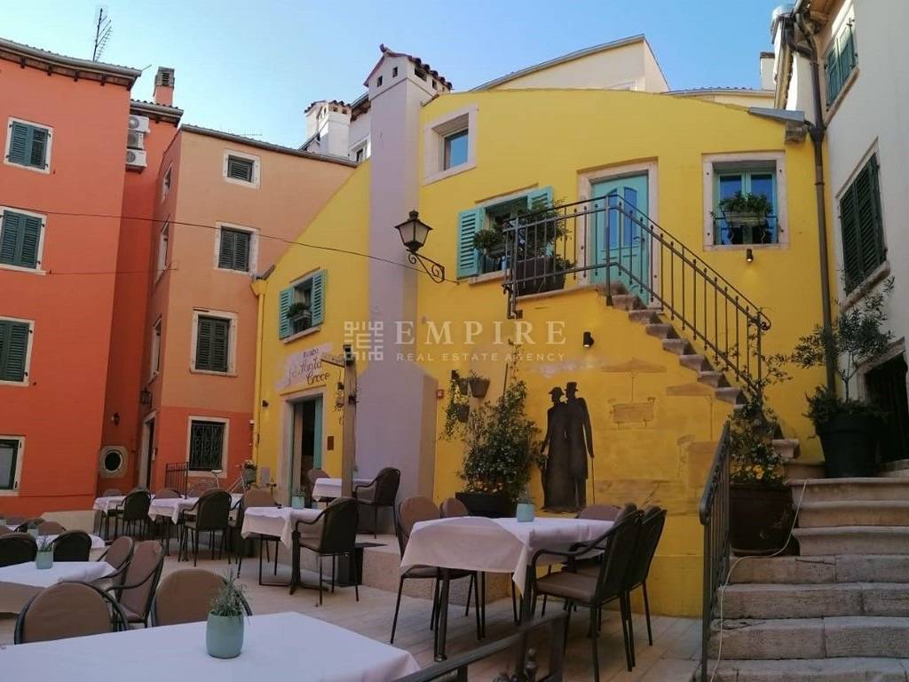 Im Zentrum von Rovinj befindet sich dieses Restaurant-Geschäftsgebäude nur 50 Meter vom Meer entfernt. Die Altstadt von Rovinj ist weltweit bekannt für ihre kleinen Gassen, die authentische und romantische Atmosphäre und zieht zahlreiche Besucher aus der ganzen Welt an. Aufgrund seiner Lage gibt es keinen Passanten, der dieses Objekt nicht bemerkt. Das Restaurant hat eine Fläche von 120 m² und nutzt eine Stadtterrasse. Im Erdgeschoss befinden sich eine Bar, eine große Küche und eine Personal-Toilette, während im Obergeschoss ein schöner Speisesaal, eine Garderobe und eine Gästetoilette zu finden sind. Der Speisesaal ist den ganzen Tag über durch Dachfenster beleuchtet und verfügt über einen zentralen Kamin, der im Winter eine besondere Atmosphäre und Wärme bietet. Ursprünglich ein Wohnhaus, wurde es 2004 renoviert und in ein Restaurant umgewandelt und betreibt seither erfolgreich. Aufgrund seiner Lage und des Angebots sind alle Tische in den Sommermonaten oft Tage im Voraus ausgebucht, was es zu einer großartigen Investition für einen Käufer macht, der das etablierte Geschäft fortsetzen möchte.