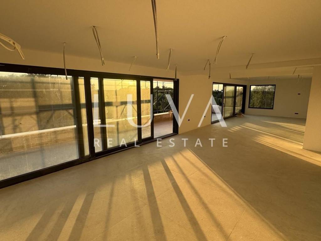 Nur zwei Kilometer vom Zentrum von Poreč entfernt wird ein luxuriöses Penthouse im Bau verkauft, das modernes Design, hochwertige Bauqualität und vollständigen Komfort vereint. Die Wohnung erstreckt sich über 153,35 m² Nettofläche und besteht aus einem geräumigen Wohnzimmer, das mit dem Esszimmer und der Küche verbunden ist, vier Schlafzimmern, zwei Badezimmern, einer zusätzlichen Toilette, einem technischen Raum und einer Waschküche. Das Hauptschlafzimmer verfügt über ein eigenes Badezimmer und eine Garderobe, während das Wohnzimmer mit einer sechs Meter langen Glaswand mit Blenden ausgestattet ist, die Zugang zu einer überdachten Terrasse von 36 m² bietet. Ein besonderer Vorteil dieser Wohnung ist die 190 m² große Dachterrasse mit Jacuzzi, ein perfekter Ort für absolute Privatsphäre und Genuss.