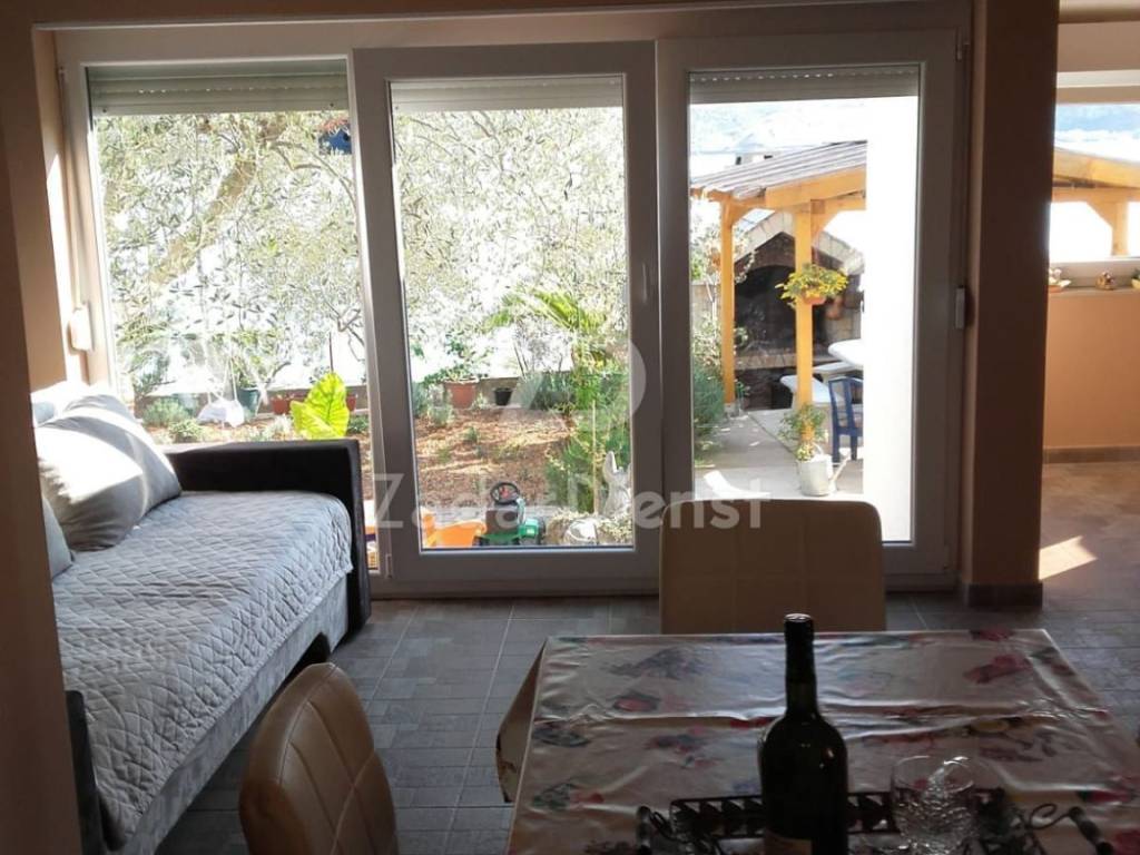 Wohnung zum Verkauf in Posedarje, in außergewöhnlicher Lage, erste Reihe am Meer, Gesamtfläche 80 m2. Es besteht aus einem Wohnzimmer mit Küche und Esszimmer, zwei Schlafzimmern und zwei Badezimmern. Die Wohnung kann als eine große Einheit oder als zwei separate Einheiten genutzt werden, eine Wohneinheit mit 50 m² und die andere mit 30 m² mit separatem Bad, Küche und Schlafzimmer.