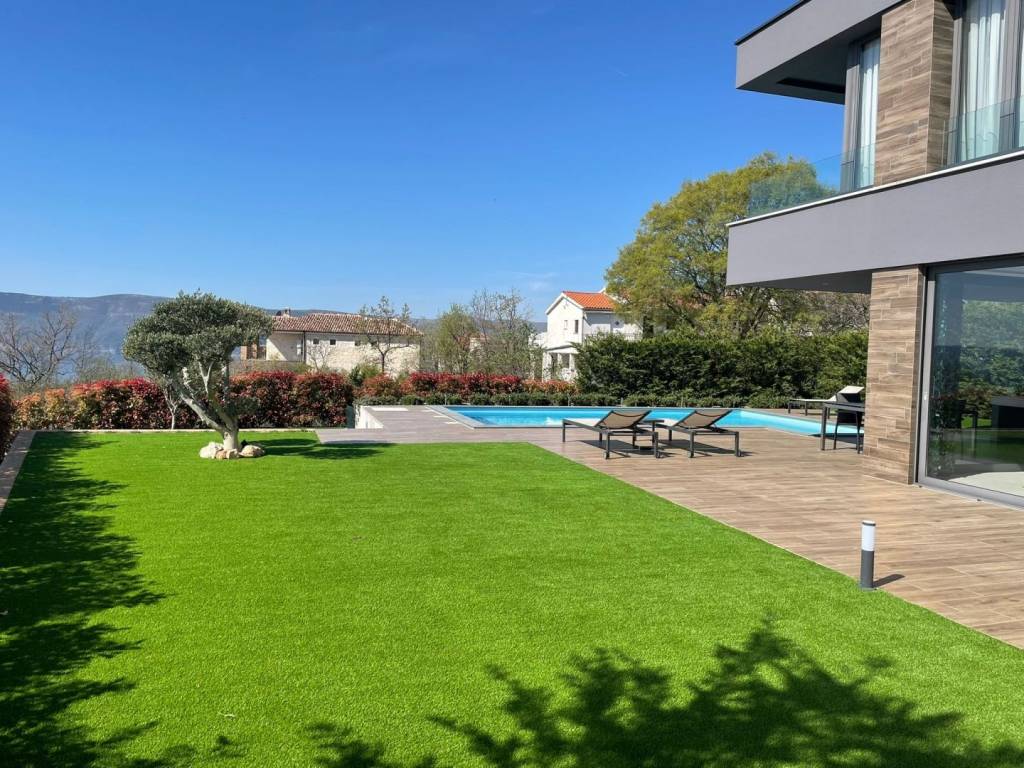 Zum Verkauf steht eine luxuriöse Villa mit Swimmingpool und Meerblick auf der Insel Krk. Die Villa besteht aus einem Erdgeschoss und einem Obergeschoss. Das Erdgeschoss besteht aus einem Flur, einer offenen Küche mit Esszimmer und Wohnzimmer, einem Schlafzimmer, einem Badezimmer, einer Toilette und einem Abstellraum. Das Wohnzimmer öffnet sich zu einer überdachten Terrasse und weiter zum Swimmingpool, Sonnendeck und Garten. Über eine Innentreppe gelangt man in die erste Etage, wo sich ein Flur, drei Schlafzimmer, zwei Bäder, eine Loggia und eine überdachte Terrasse befinden. Die Besonderheiten dieser Villa sind Fußbodenheizung in allen Räumen, vier Inverter-Klimaanlagen und Videoüberwachung. Die Villa ist mit Aluminium-Tischlereiarbeiten, Hebe-Schiebetüren mit Dreifachglas, Glasgeländern auf den Terrassen sowie hochwertiger Keramik und Sanitärkeramik ausgestattet. Der Garten verfügt außerdem über einen Außengrill und vier Parkplätze. Dieses Anwesen ist eine großartige Gelegenheit für Ihren eigenen Urlaub das ganze Jahr über und bietet aufgrund des Außenpools und des Meerblicks auch die Möglichkeit einer touristischen Vermietung während der Sommersaison. „Goldene Insel“ war in der Antike der Name der Insel Krk, und das ist kein Zufall. Die Insel Krk ist aufgrund ihrer Naturschönheiten, ihres reichen kulturellen Erbes, ihres vielfältigen önogastronomischen Angebots und ihrer zahlreichen Möglichkeiten für einen aktiven Urlaub ein beliebtes Touristenziel. Dank ihrer Lage ganz im Norden der Adria ist sie die erste und nächstgelegene Insel für alle Besucher vom europäischen Festland, die das Inselleben des Mittelmeers erleben möchten. Krk ist durch eine Brücke mit dem Festland verbunden und es gibt auch moderne und schnelle Autobahnen, die ganz Europa direkt mit Krk verbinden. Krk verfügt außerdem über einen eigenen internationalen Flughafen, der mit vielen Städten in ganz Europa verbunden ist. Als leicht zugängliche Insel ist Krk sicherlich eine gute Wahl für alle Touristen, die eine Pause von den Menschenmassen, der Hektik und dem Stress der Großstädte suchen.