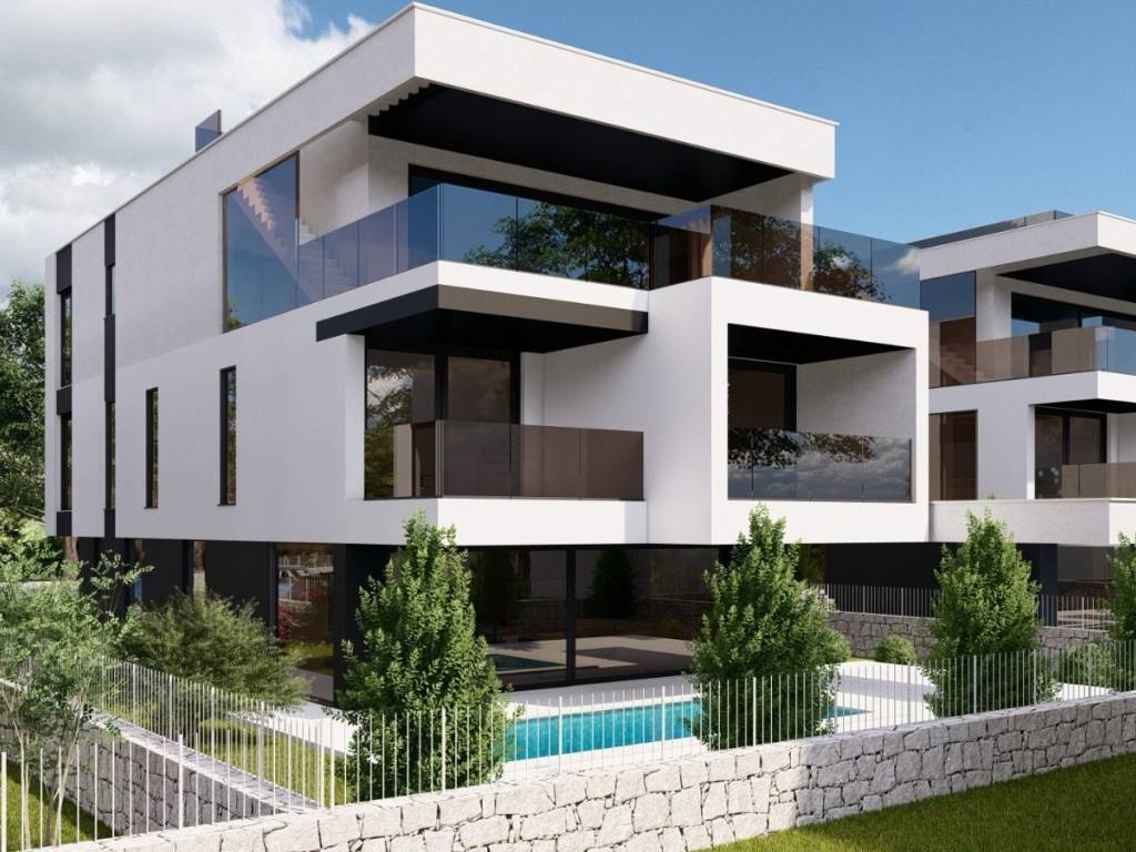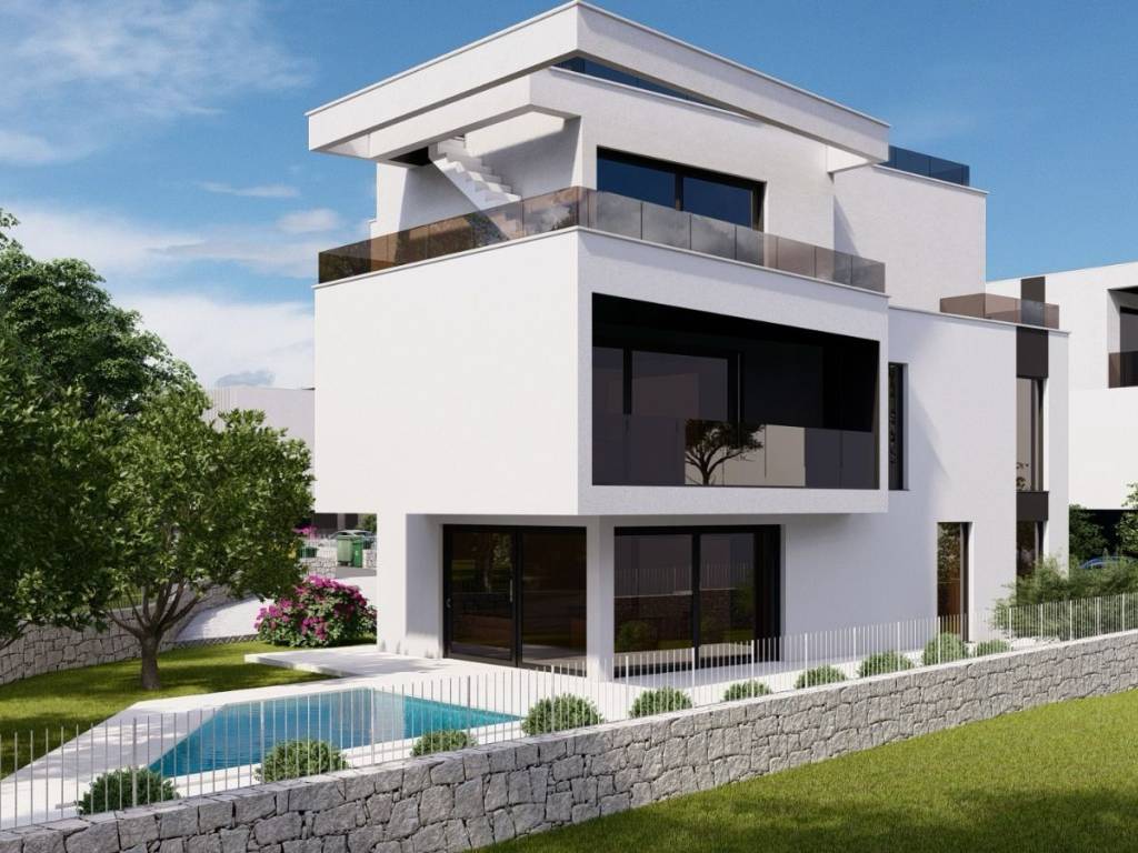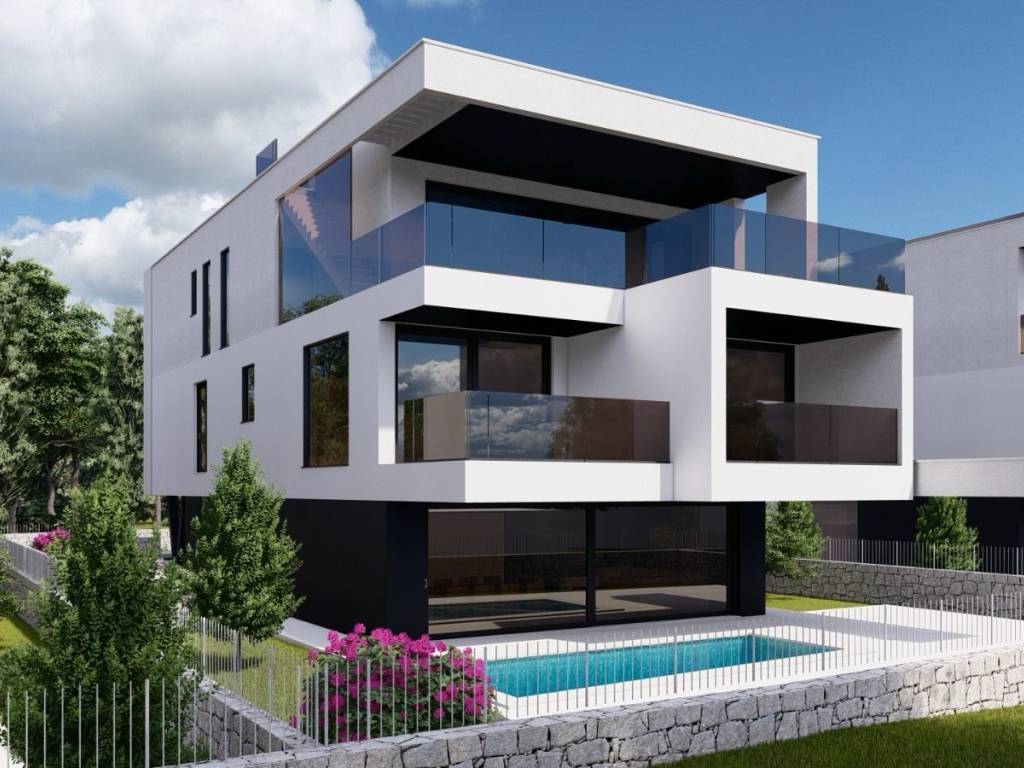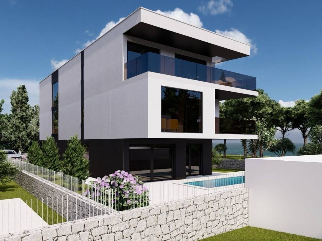 In einem ruhigen Teil von Njivice auf der Insel Krk steht ein Baugrundstück mit einem fertigen Architekturprojekt und einer sich im Einholungsprozess befindlichen Genehmigung zum Verkauf. Der Standort befindet sich auf einer Anhöhe, was selbst aus den unteren Etagen des zukünftigen Gebäudes einen freien Blick auf das Meer ermöglicht. Das Projekt sieht ein modernes dreistöckiges Gebäude mit vier Wohnungen, großen Glasflächen und einem privaten Außenpool vor. Jede Wohneinheit verfügt über eine geplante Terrasse mit Aussicht und die Raumaufteilung ist auf Komfort und Funktionalität ausgelegt. Zum Gartengrundstück gehören Parkplätze und eine gärtnerisch gestaltete Fläche. Das Grundstück liegt in einem erschlossenen Teil der Siedlung, mit Zufahrtsstraße und Infrastruktur in unmittelbarer Nähe, was den Baubeginn unmittelbar nach Erhalt der Genehmigung zusätzlich vereinfacht. Der Erwerb mehrerer Grundstücke ist möglich. Diese Immobilie ist eine ideale Gelegenheit für alle, die ein Investitionsprojekt in einem der begehrtesten Reiseziele an der nördlichen Adria suchen.