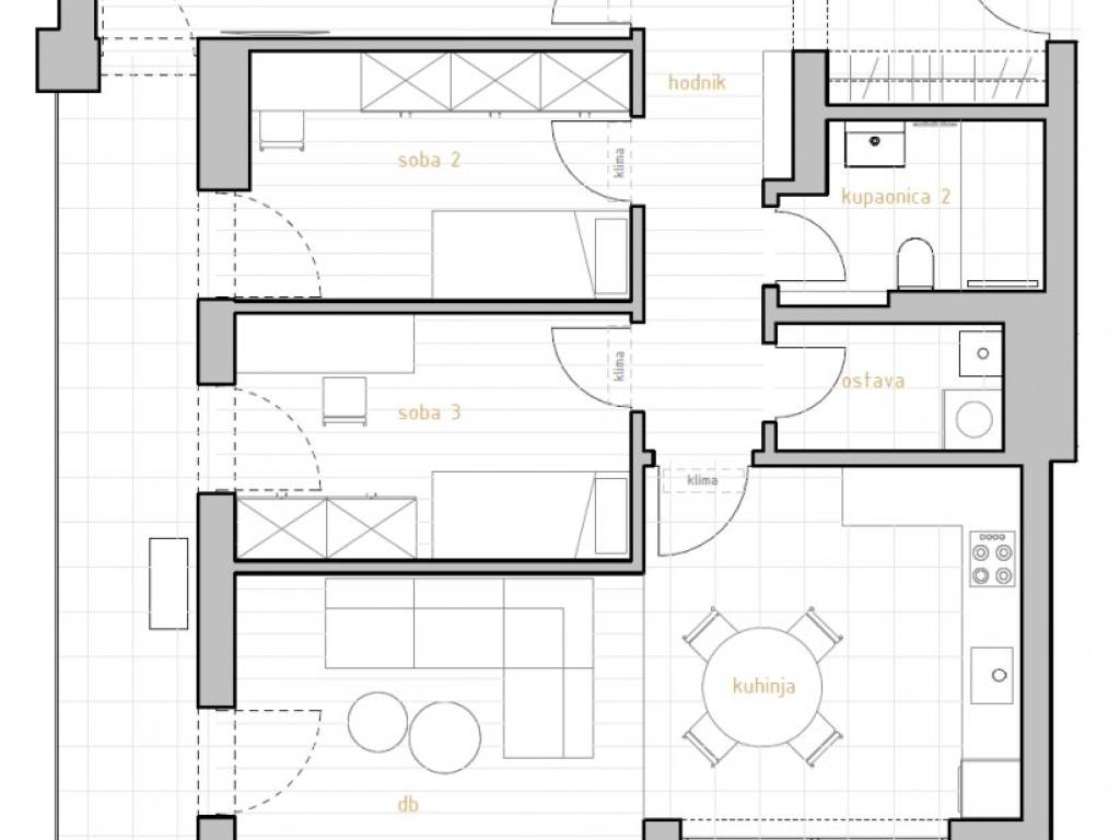 Die Wohnung 1.4 befindet sich im vierten Stock eines luxuriösen Neubaus und stellt eine hervorragende Möglichkeit für das Familienleben dar. Von der Eingangshalle gelangen Sie in das geräumige Wohnzimmer, das sich natürlich in die Küche und das Esszimmer fortsetzt und so einen zentralen Wohnraum voller Licht und Offenheit schafft. Der Wohnbereich öffnet sich zu einer großen Loggia – perfekt zum Morgenkaffee, Lesen oder Entspannen am Abend. Im privaten Teil der Wohnung befinden sich drei Schlafzimmer, die für Ruhe und Komfort sorgen. Das Elternzimmer verfügt durch die Nähe zum Hauptbad über zusätzlichen Komfort, während die beiden anderen Zimmer als Kinder-, Gäste- oder Arbeitszimmer genutzt werden können. Die Wohnung verfügt über zwei moderne Badezimmer, eine funktionale Garderobe und einen praktischen Abstellraum. Zur Wohnung gehören zwei Garagenstellplätze und ein Abstellraum im Keller. Das Projekt besteht aus 40 Wohnungen, verteilt auf fünf oberirdische Stockwerke und vier Geschäftsräumen im Erdgeschoss. Das Gebäude ist vollständig fertiggestellt, die Wohnungen sind Eigentumswohnungen und ein Kauf mit Kredit ist möglich. Zu jeder Wohnung gehört ein Abstellraum im Keller und mindestens ein Garagenstellplatz. Das Projekt umfasst insgesamt 75 Garagenstellplätze. Der Standort in Zamet bietet die Nähe zu Schulen, Kindergärten, Märkten, Stränden, Geschäften und Sportanlagen und ist nur eine fünfzehnminütige Fahrt vom Zentrum von Rijeka oder Opatija entfernt. Die Wohnungen verfügen über ein modernes Design mit angeschlossenen Loggien, Terrassen oder Gärten, angepasst an den modernen Lebensstil.