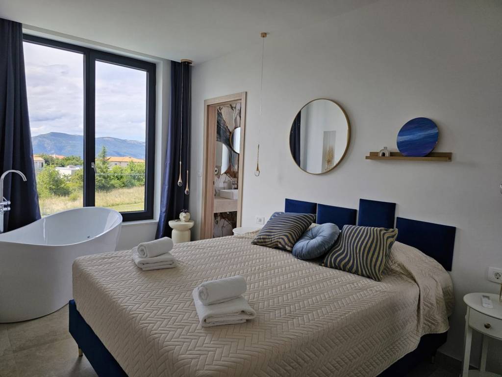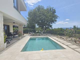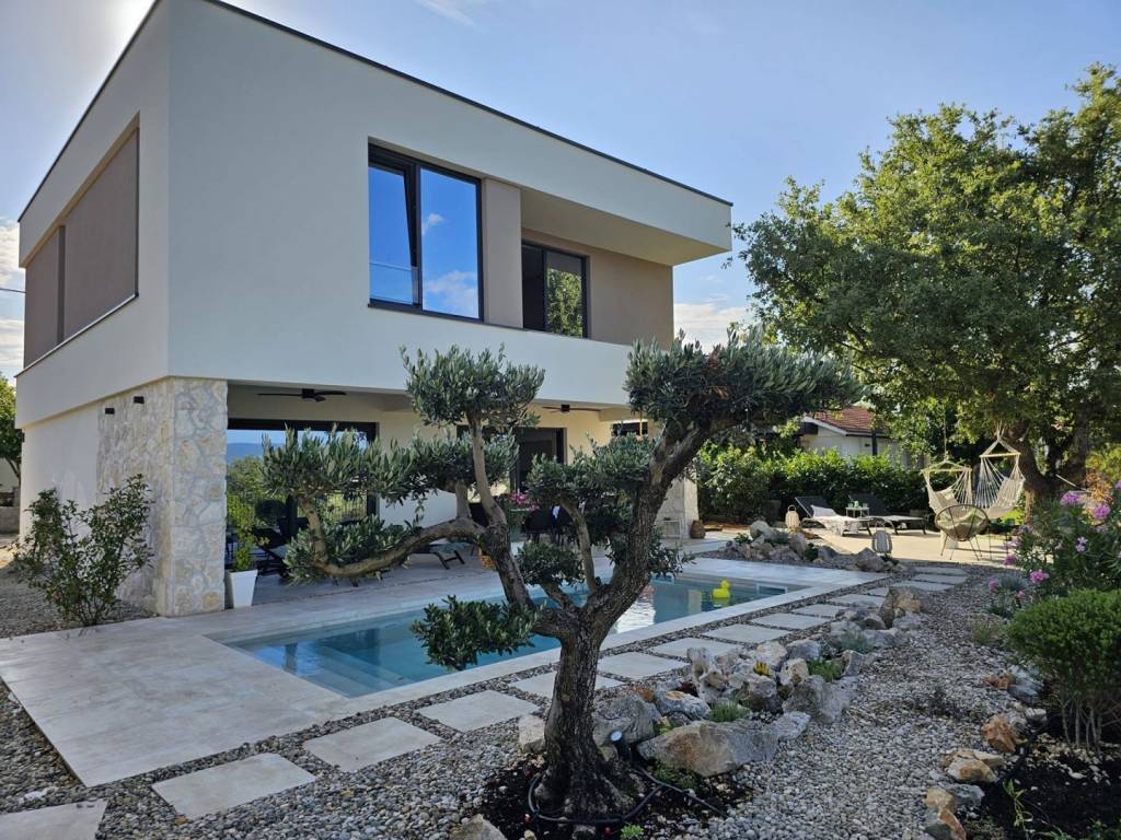 In ruhiger Lage im Umland von Krk auf der gleichnamigen Insel befindet sich diese moderne, freistehende Villa mit Pool. Sie wird komplett möbliert und bezugsfertig verkauft. Die Immobilie eignet sich ideal für Familien oder als luxuriöse Ferienimmobilie. Das zweistöckige Gebäude ist durch eine Innentreppe verbunden. Im Erdgeschoss befinden sich Eingangsbereich, Gäste-WC und Heizungsraum. Der Wohnbereich umfasst eine moderne Küche mit Essbereich und ein geräumiges Wohnzimmer mit Zugang zu einer überdachten Terrasse. Der fließende Übergang zwischen Innen- und Außenbereich schafft den perfekten Rahmen, um das milde mediterrane Klima zu genießen. Im Obergeschoss befinden sich vier komfortable Schlafzimmer, jeweils mit eigenem Bad, die allen Familienmitgliedern oder Gästen ein hohes Maß an Privatsphäre und Komfort bieten. Die Villa wurde mit Fokus auf Qualität und Langlebigkeit errichtet. Alle Räume verfügen über Fußbodenheizung, eine Split-Klimaanlage, moderne Keramikfliesen, Sicherheitstüren und hochwertige PVC-Fenster und -Türen. Die Badezimmer sind mit hochwertigen Sanitäreinrichtungen ausgestattet, und die integrierte Sauna, ideal für Entspannung und Wellness im eigenen Zuhause, steigert den Wert dieser Immobilie zusätzlich. Sorgfältig ausgewählte Details steigern den Wohnkomfort zusätzlich. Der Garten ist komplett umzäunt und wunderschön angelegt, mit einem mediterranen Garten, einer überdachten Terrasse, einem Swimmingpool mit Liegewiese und Platz für mehrere Fahrzeuge. Die Privatsphäre und Funktionalität des Gartens machen diese Immobilie besonders attraktiv. Dank der hochwertigen Bauweise, der geschmackvollen Ausstattung und der exzellenten Lage in Strandnähe sowie in der Nähe von Geschäften und anderen Annehmlichkeiten bietet diese Immobilie auf der Insel Krk eine hervorragende Gelegenheit sowohl für die Eigennutzung als auch für die touristische Vermietung.
