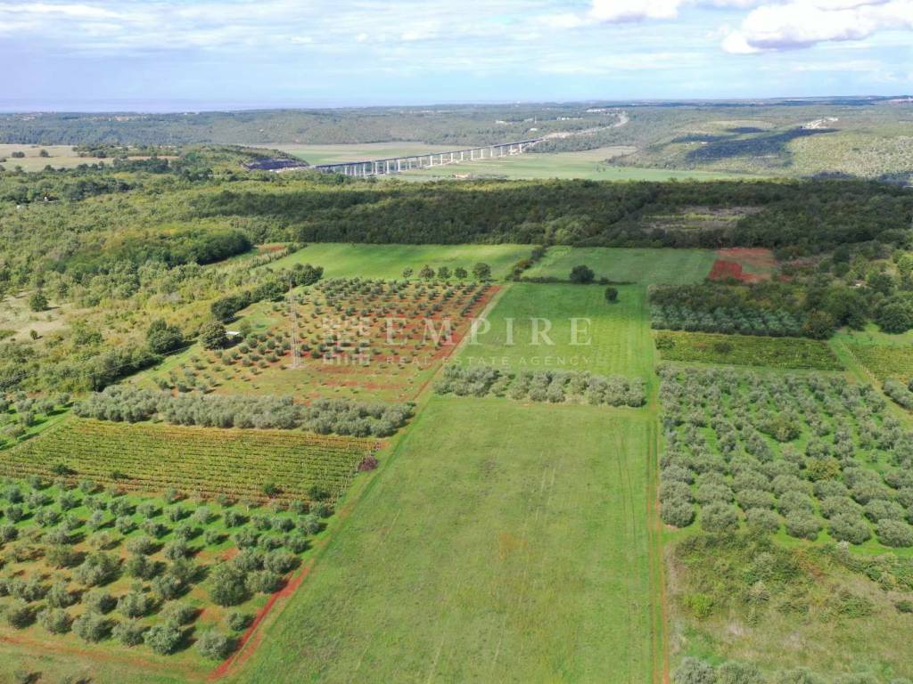 Stellen Sie sich Ihr Stück Paradies in der wunderschönen Umgebung von Tar Vabriga vor, wo der Duft frischer Erde und mediterraner Luft jeden Atem erfüllt. Auf fast 80.000 m² erzählt dieses Grundstück eine Geschichte von ruhigem Leben und harmonischer Verbindung mit der Natur. Davon sind 30.000 m² dichte Wälder, die Schatten spenden und das Gefühl der vollständigen Eintauchen in unberührte Natur vermitteln, während die restlichen 50.000 m² landwirtschaftlich nutzbar sind, ideal für den Anbau und das Genießen der Früchte der Erde.