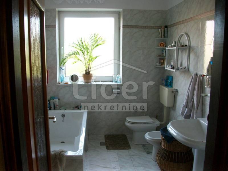 Velika kuća, potpuno završena i opremljena s uređenom okućnicom i dvije garaže. Tri odvojene stambene jedinice s trosobnim komfornim stanovima, odmah useljive i gospodarska kuća- katnica s garažom. Etažno plinsko grijanje te solarno grijanje vode. Ukućnica s puno zelenila i bazenom za plivanje.