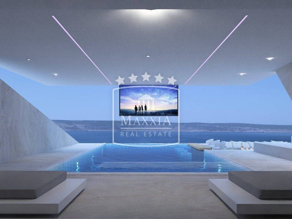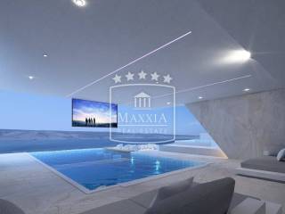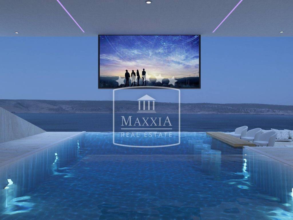 Das Freiluftkino auf der Terrasse mit Infinity-Pool, offen zum Meer und zur Landschaft, bietet ein großartiges Erlebnis.