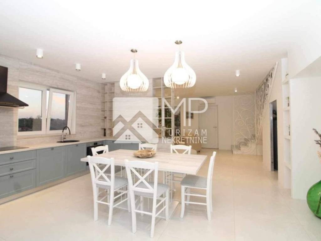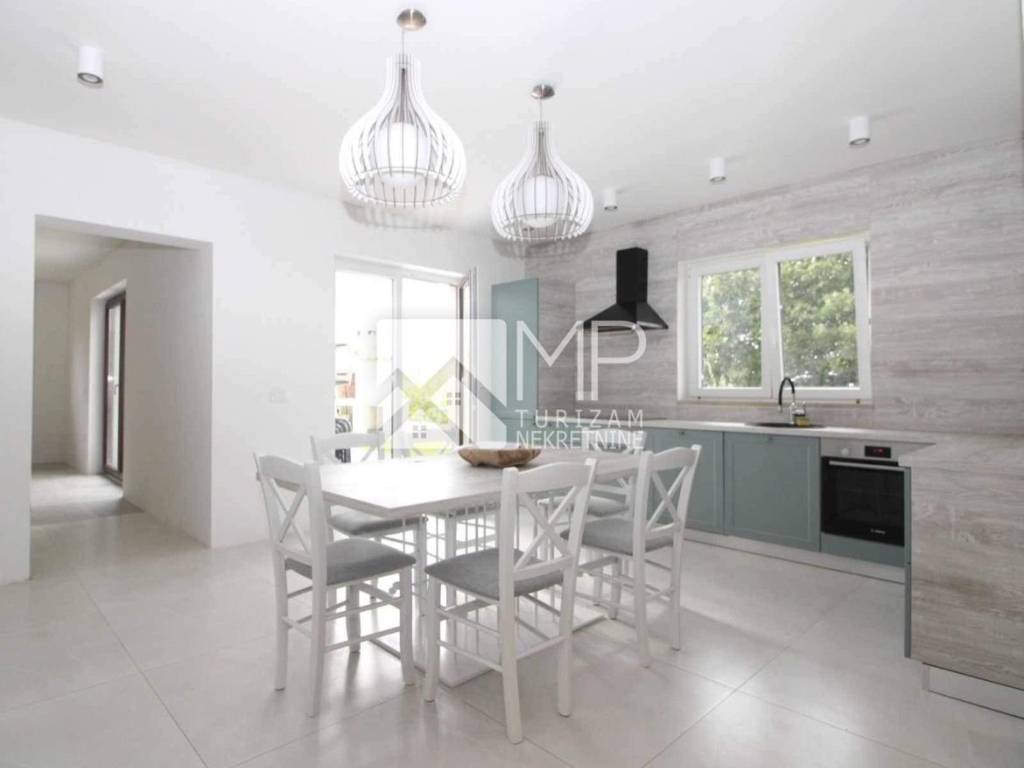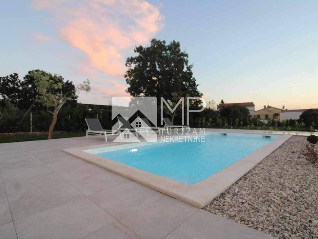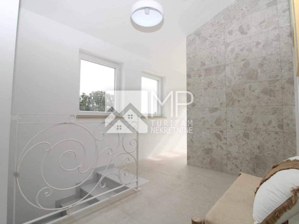 In der kleinen istrischen Stadt Hrboki, etwa 30 km von Pula entfernt, wo Sie einen wohlverdienten Urlaub verbringen können, befindet sich ein wunderschönes, neu renoviertes Etagenhaus von 125 m2 auf einem Grundstück von 1113 m2.