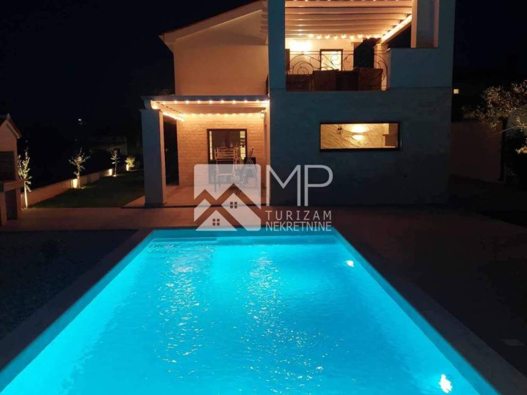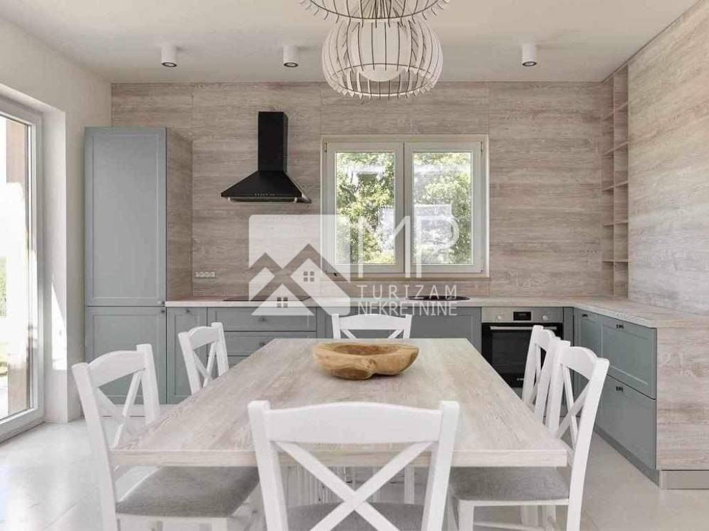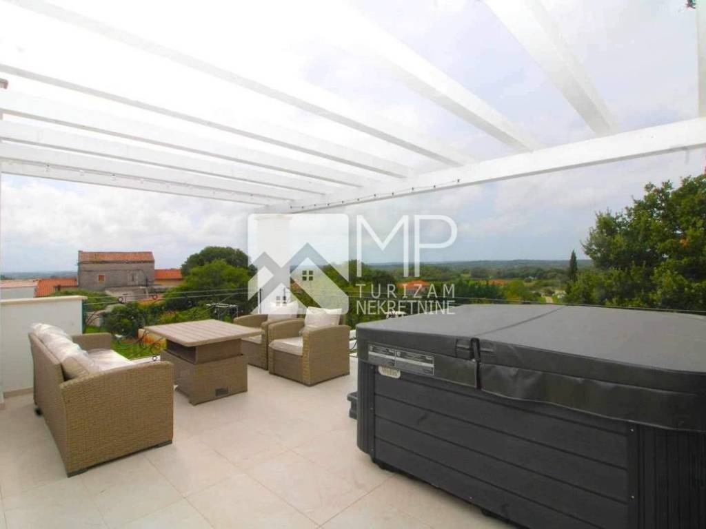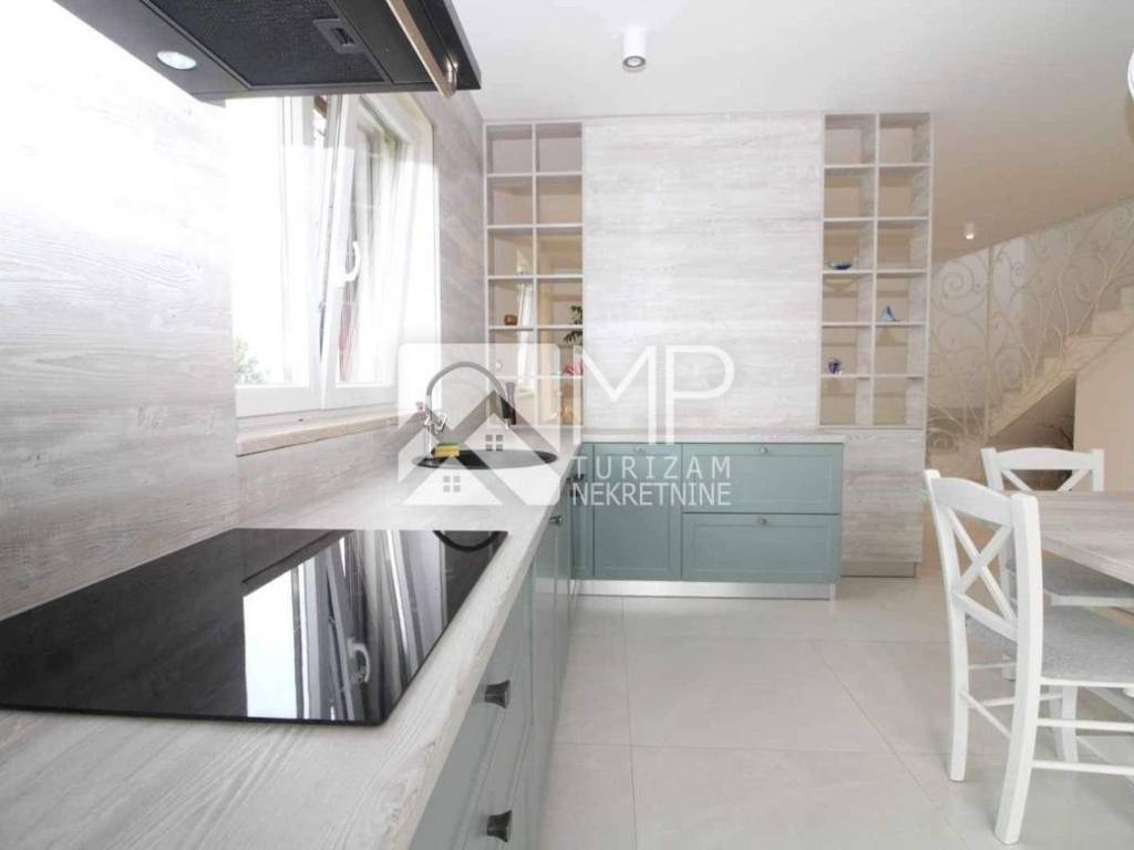 In der kleinen istrischen Stadt Hrboki, etwa 30 km von Pula entfernt, wo Sie einen wohlverdienten Urlaub verbringen können, befindet sich ein wunderschönes, neu renoviertes Etagenhaus von 125 m2 auf einem Grundstück von 1113 m2.