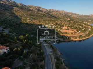 Ein Grundstück mit einer Fläche von 4550 m2 ca. 30 m vom Meer und Strand entfernt. 2460 m2 des Grundstücks sind für den Bau bestimmt, während die anderen 1998 m2 in der landwirtschaftlichen Zone liegen. Spektakuläre Aussicht auf das Meer und die Inseln. Sehr sauberes Meer und unberührte Natur.