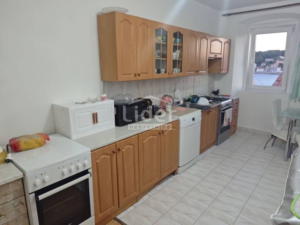 Auf der duftenden Insel Lošinj steht diese sonnige Wohnung zum Verkauf, die sich in der ersten Reihe zum Meer und in idealer Wohnlage befindet. Es befindet sich im zweiten Stock eines Wohnhauses und besteht aus zwei Schlafzimmern, Wohnzimmer, Küche und Bad. Die Wohnung hat einen wunderschönen Blick auf das Meer und den Hafen von Lošinj! Es wird möbliert und bezugsfertig verkauft.