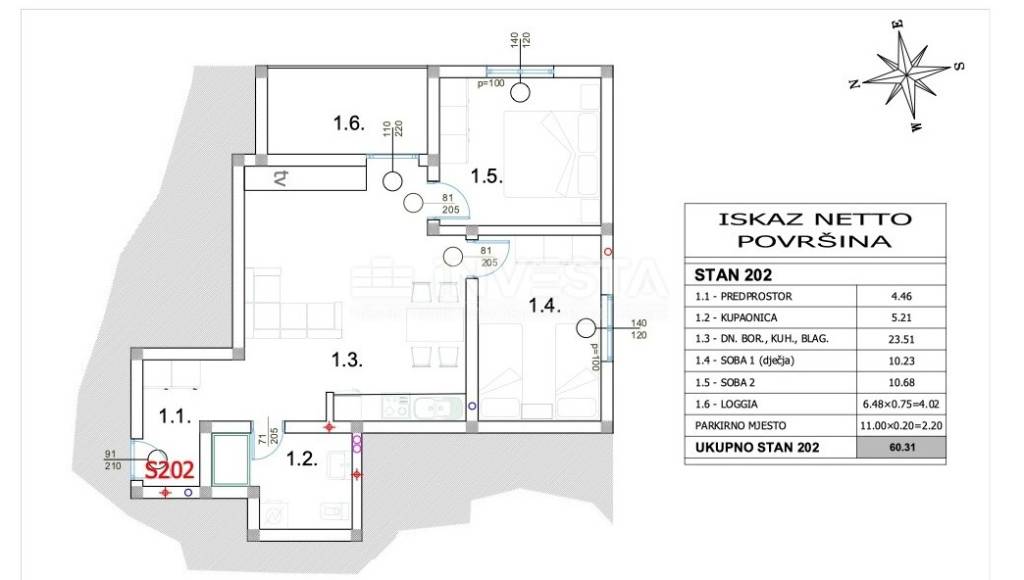 Im zweiten Stock eines modernen Gebäudes in Peroj wird eine funktionale Wohnung mit 60,31 m² zum Verkauf angeboten – ideal für komfortables Wohnen oder Entspannen in der Nähe von Natur und Meer.