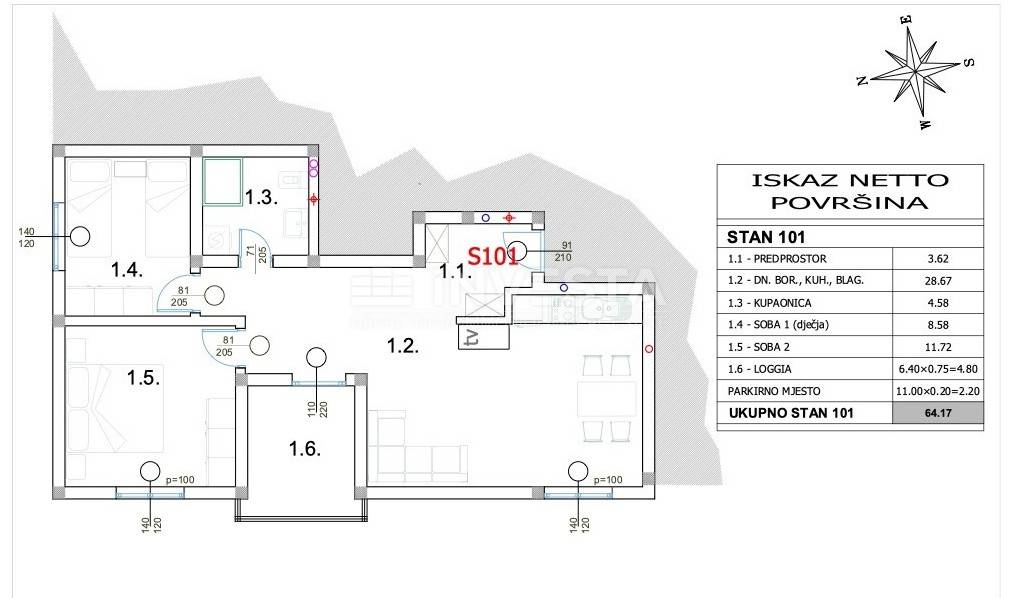 Das Eigentum ist ordentlich, lastenfrei, und das Gebäude besitzt eine Benutzungsbewilligung. Die Wohnungen sind eigenständig vermessen, jede hat eigene Strom- und Wasserzähler, und zur Wohnung gehört ein privater Parkplatz vor dem Gebäude.