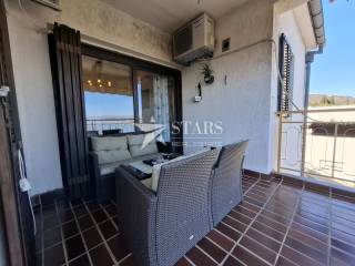 Sie befindet sich im zweiten und letzten Stock eines Gebäudes aus dem Jahr 1990, das nur drei Wohnungen umfasst. Obwohl das Gebäude nur wenige Wohnungen hat, sind der Hof und die Wohnung videoüberwacht, was Sicherheit und Privatsphäre garantiert. Die Wohnung hat einen eigenen Eingang und erstreckt sich über die gesamte Etage mit einer Gesamtwohnfläche von 101,20 m². Sie besteht aus drei Schlafzimmern, von denen eines ein eigenes Badezimmer und eine Ankleide hat, einem weiteren Badezimmer, einem Wohnzimmer, einer Küche mit Speisekammer, einem Esszimmer, einem Flur und einem überdachten Balkon mit Markise (8,30 m²). Der Balkon ist nach Süden ausgerichtet und bietet einen wunderschönen Blick auf das Meer. Er ist vom Wohnzimmer und vom Esszimmer aus zugänglich.