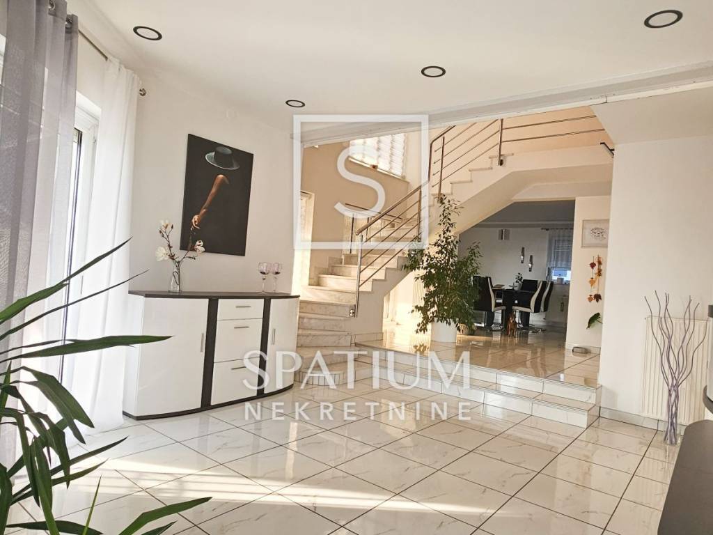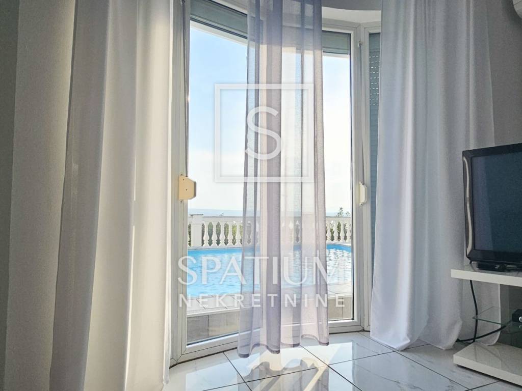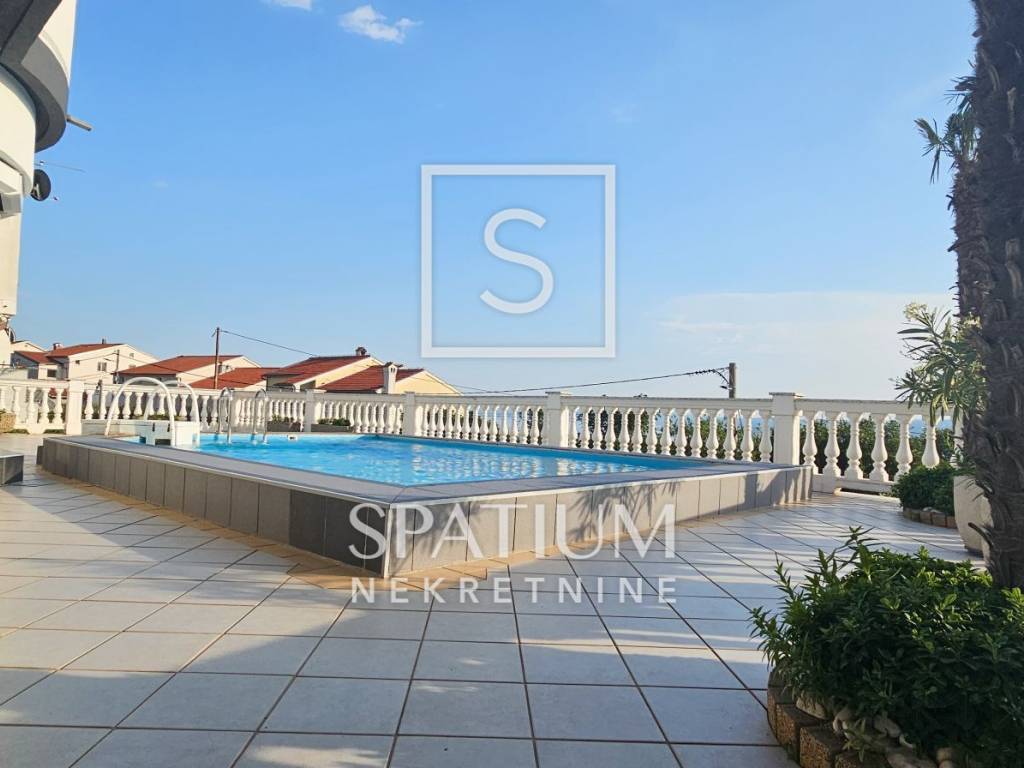 DRAMALJ, CRIKVENICA, wir bieten ein Haus mit Swimmingpool und wunderschönem Blick auf das Meer. Freistehendes Haus mit einer Fläche von 250 m2, besteht aus einem Erdgeschoss und einem ersten Stock, die durch eine Innentreppe verbunden sind, und eine komfortable Familienwohneinheit bilden. Erdgeschoss: Eingangshalle, Küche, Esszimmer und offenes Wohnzimmer, Schlafzimmer und Badezimmer. Etage: zwei Schlafzimmer, eines davon mit eigenem Bad, separates Bad, Zimmer, das derzeit in ein kleineres Wohnzimmer umgewandelt wird, und Galerieflur. Der gesamte Innen- und Außenbereich ist sehr schön in einem eleganten und modernen Stil eingerichtet und bietet gleichzeitig den Komfort eines komfortablen Lebens. Zentralheizung mit Öl oder Pellets, Möglichkeit zum Heizen und Kühlen mit Klimaanlagen. Im eingezäunten, wunderschön dekorierten und gepflegten Garten gibt es eine Wohnung, eine separate Wohneinheit von 45 m2, einen großen Grill mit Terrasse für Zusammenkünfte, eine Räucherei, eine gepflasterte und dekorierte großzügige Innenhofterrasse mit einem 6 x 4 m großen Swimmingpool, eine Sonnenterrasse usw Bereich mit Sitzgelegenheiten, einem mediterranen Garten, zwei Garagen und Stellplatz für mehrere Fahrzeuge. Das Projekt dieser Immobilie wurde in seiner Gesamtheit sorgfältig ausgearbeitet und neben der besonderen Aufteilung des Innenraums zeichnet sich die Immobilie durch die Trennung des Außenraums, mehrere Terrassen und Balkone mit wunderschönem Blick auf das Meer aus. Es liegt in einem ruhigen Teil der Stadt und dennoch in der Nähe aller notwendigen Annehmlichkeiten. Eine Gelegenheit für alle, die ein Familienhaus suchen, das komfortables Wohnen bietet!! Eine ausgezeichnete Investition in ein Ferienhaus und eine touristische Aktivität. Eine Rarität im Angebot, eine Immobilie, die Aufmerksamkeit verdient!! Empfehlung des Maklers!!