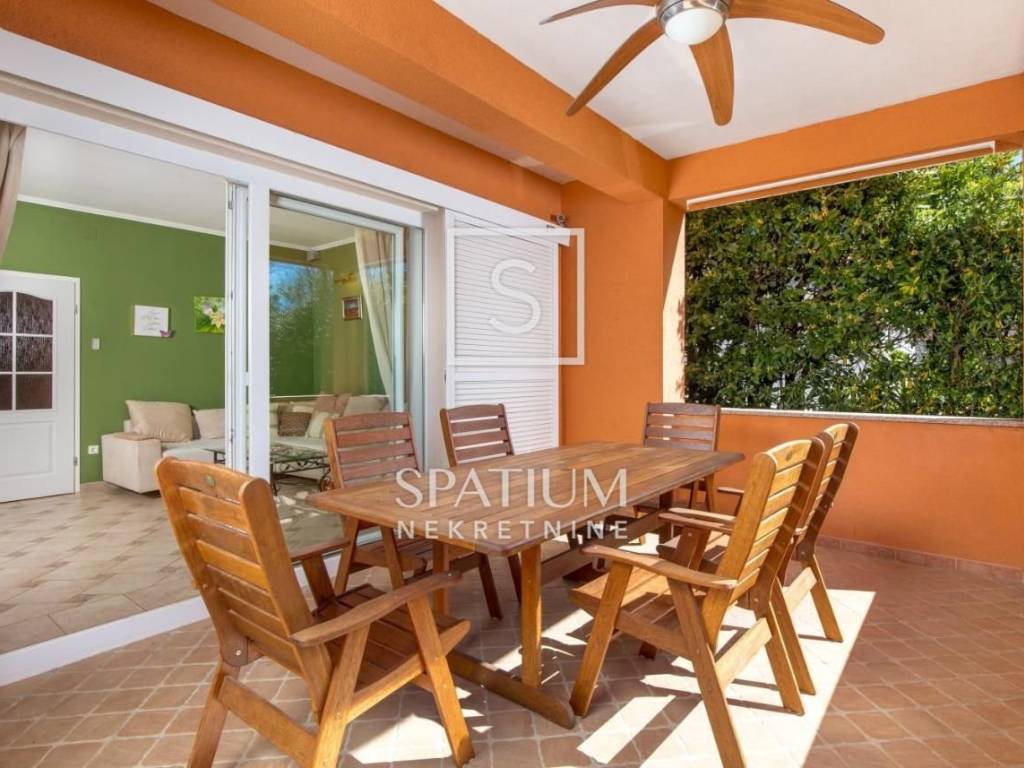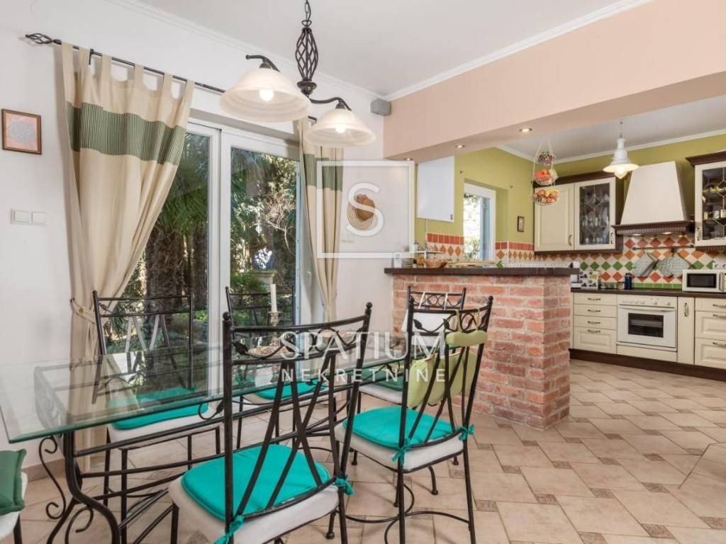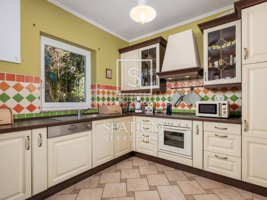 DRAMALJ, CRIKVENICA, bietet eine Villa mit mediterranem Garten in der Nähe des Meeres. Es befindet sich in einer ausgezeichneten und begehrten Lage, 200 m vom Meer und dem Strand entfernt. Es erstreckt sich über drei Etagen, die durch eine Innentreppe verbunden sind. Erdgeschoss: Eingangshalle, Küche, Esszimmer und offenes Wohnzimmer mit Zugang zur überdachten Terrasse und zum mediterranen Garten, Badezimmer. Erster Stock: drei Schlafzimmer, zwei davon mit Zugang zu einer Südterrasse und ein Badezimmer. Zweiter Stock: großzügiger offener Raum mit Schlafzimmer und Wohnzimmer, Badezimmer, Ausgang zu einer großzügigen Terrasse mit freiem Blick auf das Meer. Eine Immobilie von hoher Bau- und Ausstattungsqualität, komplett eingerichtet mit sorgfältig ausgewählten Details, wobei auf den Komfort des Aufenthalts mit einem Hauch von Vergangenheit geachtet wird. Zeitloser Vintage-Stil kombiniert mit modernem Komfort. Fassadendämmung, Fußbodenheizung in den Bädern, PVC-Zimmerei, Parkettböden in den Zimmern, hochwertige Keramik, Alarmanlage mit Videoüberwachung, automatische Bewässerung des Gartens. Im umzäunten und wunderschön angelegten Garten gibt es Terrassen, einen Raum zum geselligen Beisammensein, eine Dusche, Gärten mit mediterranen Pflanzen, einen Obstgarten mit Früchten, eine Garage und es besteht die Möglichkeit für zusätzliche Einrichtungen wie einen Swimmingpool oder einen Whirlpool. Das Haus verfügt außerdem über einen zusätzlichen Parkplatz für zwei Fahrzeuge. Das Besondere an dieser Immobilie ist neben der hervorragenden Lage auch die Raumaufteilung, der Dekorations- und Ausstattungsstil sowie der Garten, der absolute Privatsphäre gewährleistet. Rarität auf dem Markt!!