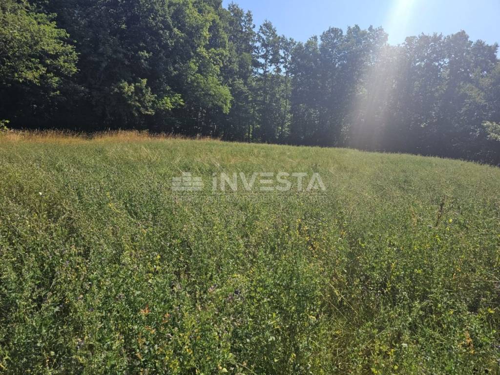 In der Umgebung von Pazin, am Rand der Ortschaft, wird ein großzügiges Grundstück mit einer Gesamtfläche von 36.582 m² zum Verkauf angeboten, davon 6.325 m² Bauland, während der Rest aus landwirtschaftlichen Flächen und Wald besteht (30.257 m²).