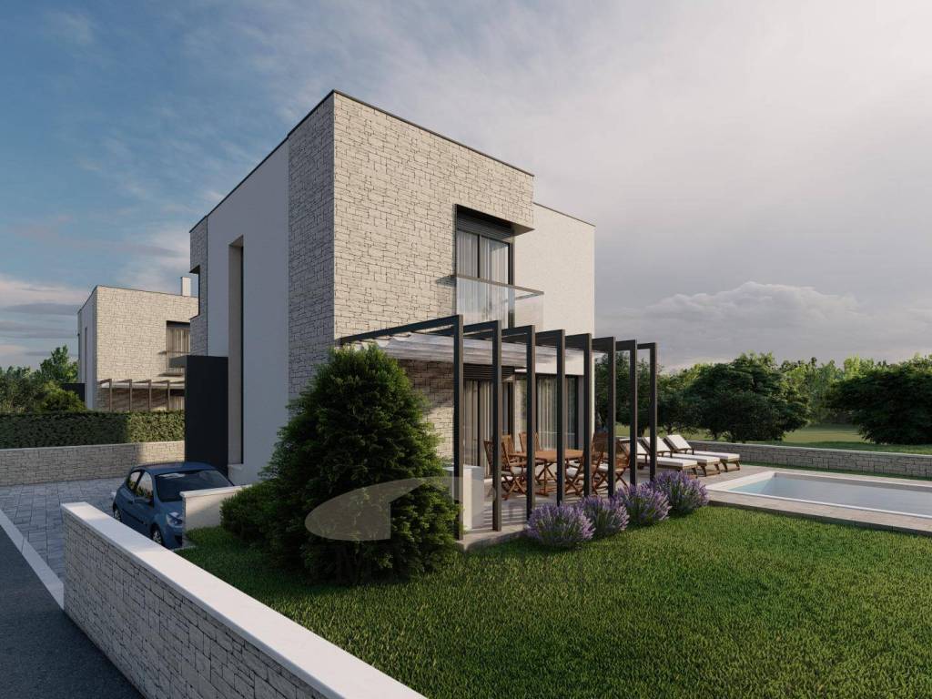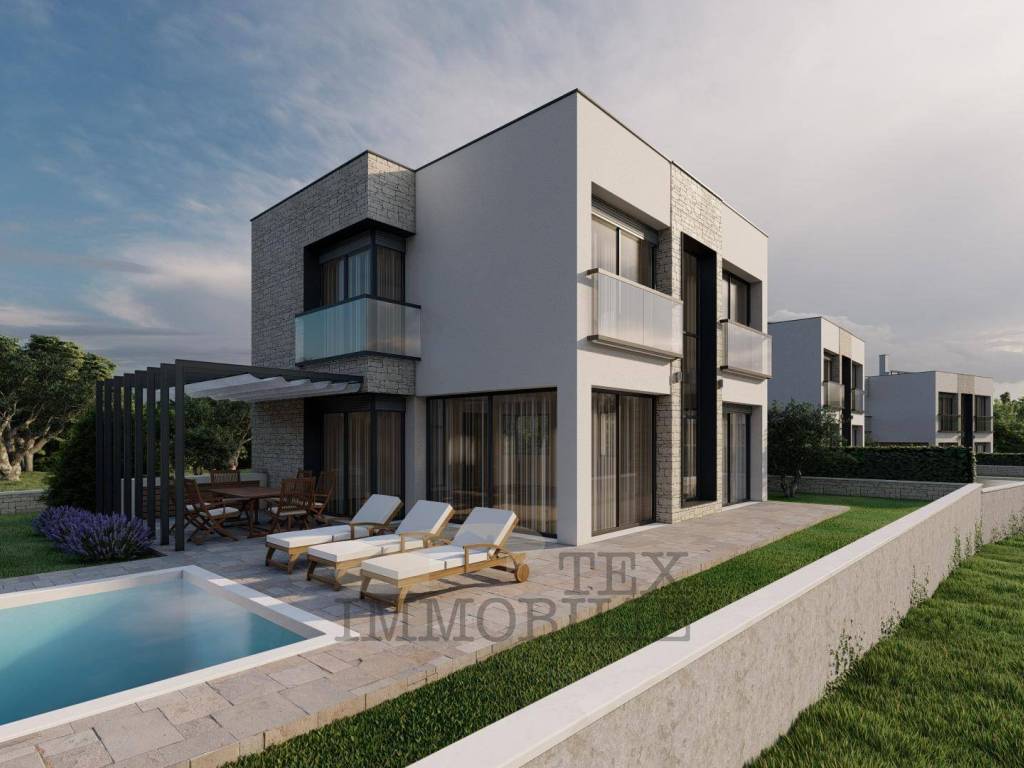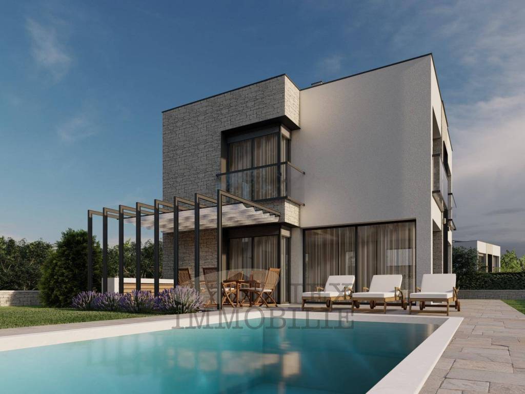 In einer wunderschönen Lage auf der Westseite Istriens befindet sich eine moderne und elegante Villa im Bau. Es ist von einem Olivenhain umgeben und ist ideal für alle wahren Naturliebhaber, die einen Ort für ein angenehmes Leben in absoluter Privatsphäre suchen. Bei einer Wohnfläche von 149 m2 befinden sich im Erdgeschoss ein Wohnzimmer, ein Esszimmer und eine Küche, zwei Abstellräume und ein Badezimmer mit Dusche. Im Untergeschoss der Villa befindet sich ein Technikraum von 7m2. Das Heizsystem wird mit einer Wärmepumpe und einer Fußbodenheizung gelöst. Es wird auch einen Luftrekuperator (Abführung verbrauchter, abgestandener Luft und Zufuhr sauberer, gefilterter Luft) haben. Jeder Raum verfügt über einen Raumthermostat, der die Heizung und Kühlung desselben Raums regelt. Auf der ersten Etage befinden sich zwei Badezimmer und drei Schlafzimmer, von denen eines einen zusätzlichen Kleiderschrank haben wird. Jedes Fenster wird aus Dreifach-Isolierglas und elektrischen Jalousien bestehen. Einbruchhemmende Eingangsdrehtüren ohne klassische Bänder machen die Tür außergewöhnlich und verleihen der Immobilie einen Eindruck von höherem Design. Die Villa wird auch über ein Smart-Home-System verfügen, das die Möglichkeit bietet, alle intelligenten Geräte (z. B. Fernseher, Waschmaschine, Kühlschrank usw.), Klimaanlage und Heizung, Lüftung, Gegensprechanlage und Jalousien anzuschließen. Auf Kundenwunsch ist es möglich, Videoüberwachung, Alarmanlage, Poolheizung, Sonnenkollektoren und ein Ladegerät für Elektrofahrzeuge anzuschließen. Die Sommerküche besteht aus einer Arbeitsfläche und der Installation von Wasser und Abfluss.