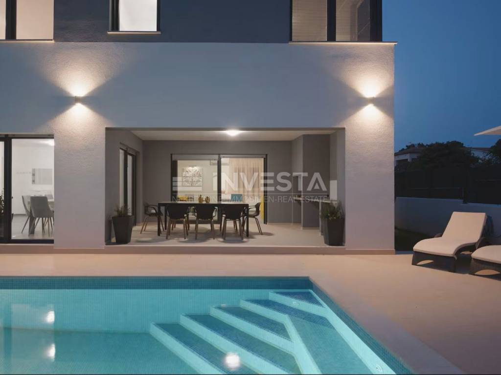 Zu verkaufen: eine moderne Villa im ruhigen Wohngebiet, nur wenige Fahrminuten vom Zentrum von Pula entfernt. Dieses freistehende Haus, erbaut 2019, bietet die perfekte Verbindung von Funktionalität, Ästhetik und Komfort – ideal für ein familiäres Zuhause oder als attraktive Investition im Tourismus.