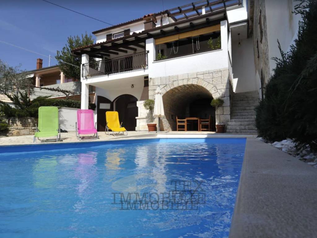 Das Haus befindet sich im Zentrum eines kleinen Dorfes in der Nähe von St. Lovreč. Erbaut auf den Fundamenten des alten Hauses im Jahr 1998. Im Erdgeschoss befinden sich eine Garage, zwei größere Zimmer, ein Heizungsraum und ein Badezimmer. Auf der ersten Etage gibt es ein geräumiges Wohnzimmer und eine Küche, eine Terrasse, ein Badezimmer und ein Schlafzimmer. Im Dachgeschoss befinden sich zwei Schlafzimmer, ein Badezimmer, ein weiteres Wohnzimmer und eine Terrasse mit wunderschönem Meerblick. Das Haus wird mit einer Ölzentralheizung beheizt und verfügt über Klimaanlagen in den Schlafzimmern und im Wohnzimmer.