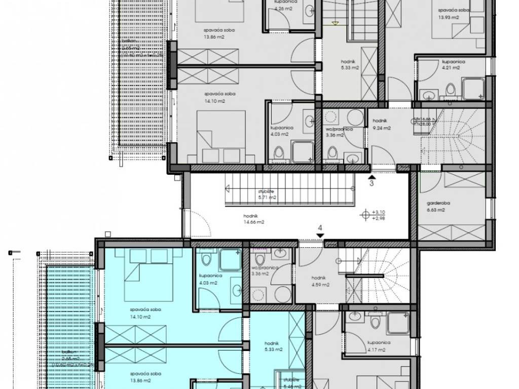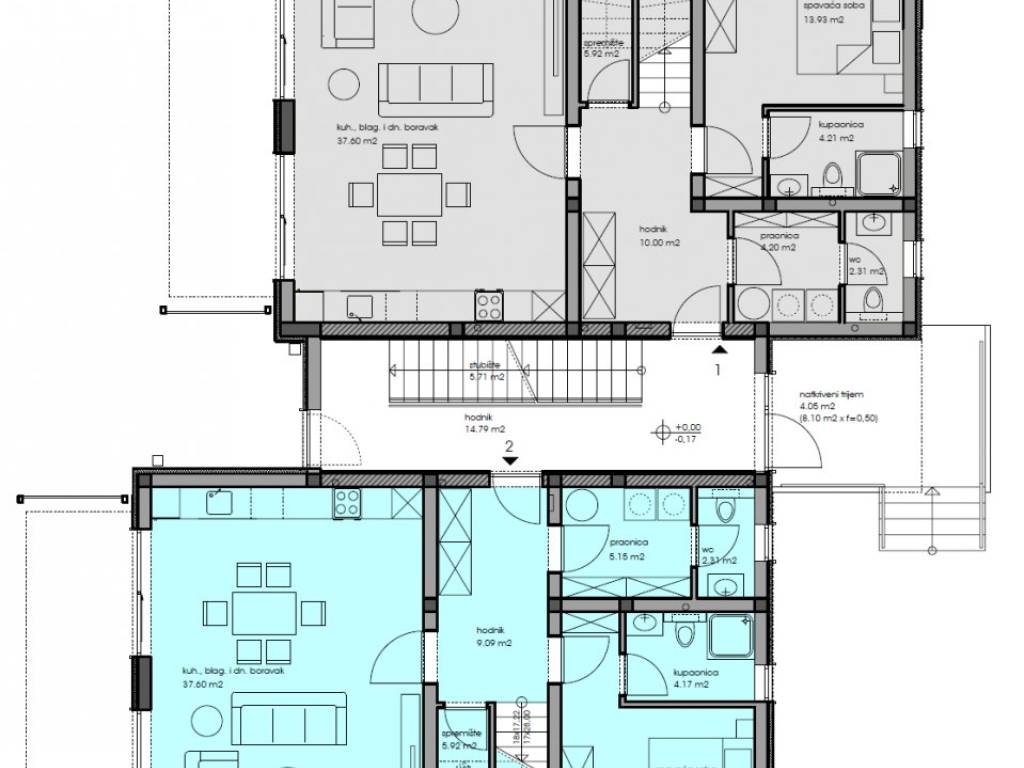 Im ersten Stock befinden sich zwei Schlafzimmer, jeweils mit eigenem Bad, sowie eine gemeinsame Terrasse. Im Kellergeschoss gibt es einen Abstellraum von 5,80 m².