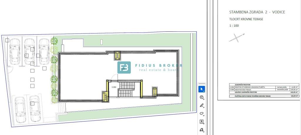 Die Wohnung S3 befindet sich im 2. Obergeschoss eines Gebäudes mit einer Gesamtnutzfläche von 149,88 m² (Nutzfläche inklusive zweier Parkplätze und einer unüberdachten Dachterrasse von 129,40 m², berechnet 25,88 m²). Sie besteht aus Eingangsbereich, Küche, Esszimmer, einem geräumigen Wohnzimmer (40,42 m²) mit Zugang zu einer überdachten Loggia (16,77 m²) mit herrlichem Meerblick, drei Schlafzimmern, zwei Badezimmern und einem separaten WC. Eine Außentreppe führt auf die großzügige Dachterrasse mit wunderschönem Panoramablick auf das Meer und die Stadt. Zur Wohnung gehören zwei Parkplätze.