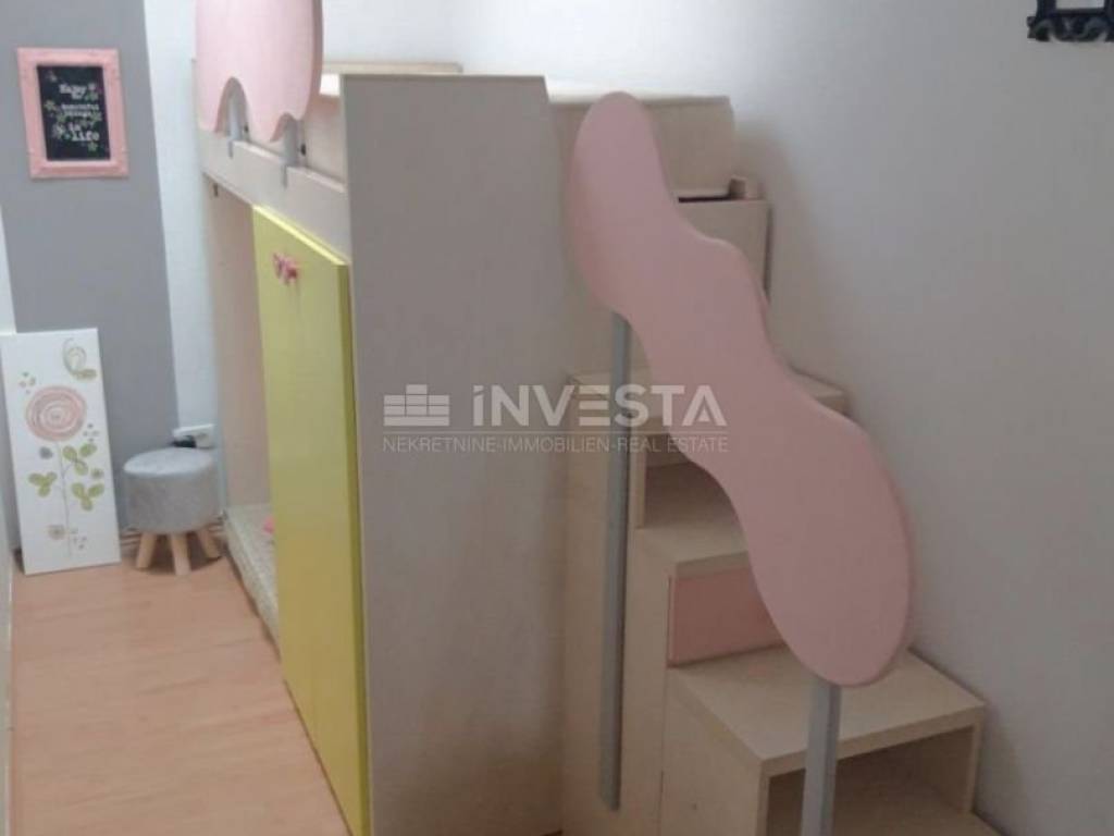 Im ersten Stock befindet sich eine Wohnung von ca. 90 m², mit 3 Schlafzimmern, Küche, Esszimmer, Wohnzimmer, Badezimmer und Zugang zu einer Terrasse.